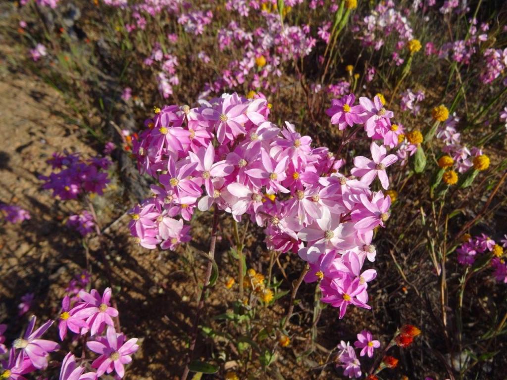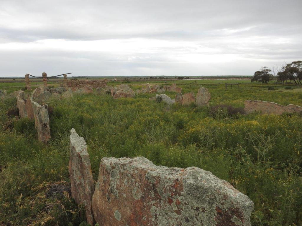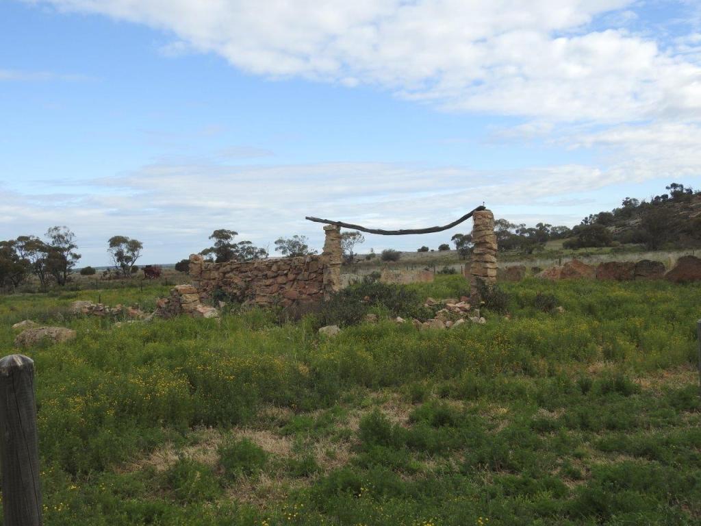 Next stop, Marshall Rock, which has a picnic table on top! Great view of the surrounds and a nice campsite at the bottom. The everlastings are just starting to flower. From here we went further along the road to Pergande Sheepyards & Homestead. An interesting, derelict place, where the yards are made from plates of rock, extricated and transported from the rock behind the property. It seems like making those yards was a lot harder than it needed to be.