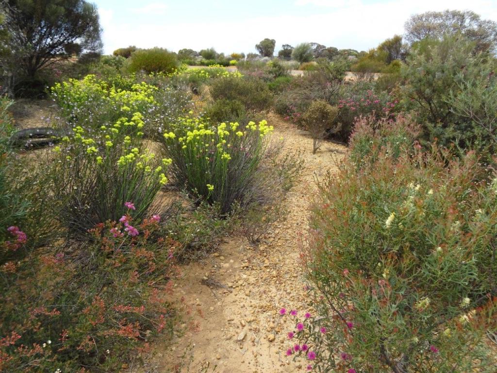 After our early start and excellent tour we needed coffee so we headed for the IGA which has a cafe. We picked up a few extra supplies and headed to the vans to plan the rest of our day. And what a fun, fun day it was. First we headed to the Koorda wildflower reserve. I think this would be a great place to stay! The stars at night here would be magical thanks to a light free sky. Unfortunately there were almost no wildflowers thanks to that same frost that killed part of the harvest but we did find a few Koorda roses. Our next stop was Gabbin ghost town. Along the way we persevered in our quest for wildflowers, with still very little success. We did find many a lazy lizard though. Back to Gabbin. Another great place for a stay with some excellent ablutions, including a shower! The town does indeed look deserted, except for the one place with the “keep out or else” sign.