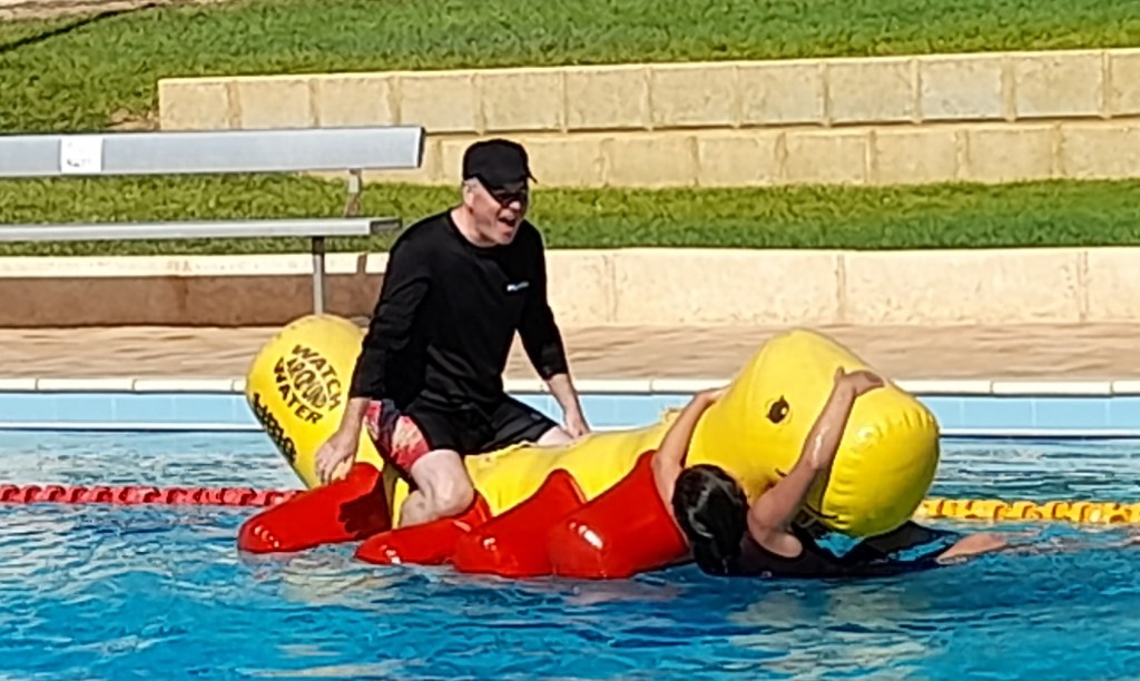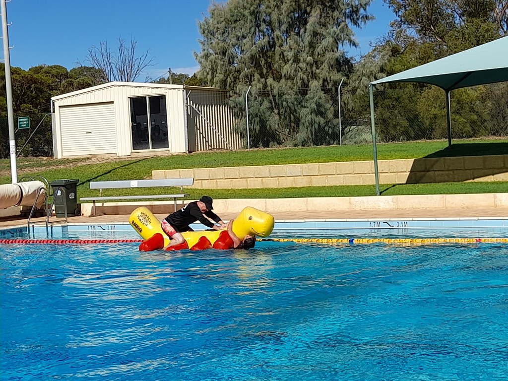 After lunch the 5 of us walked across the pool. This was a really fun way to spend the afternoon. The entry was free and as we arrived there was an inflatable in full swing, with kids have a fun time attempting to run the length of it. Apparently, they swap them among the pools across the region. Little Jayco had a go, but couldn’t master it. I was going to try but it got packed away before I had a chance (at least that’s my excuse). Instead, we threw the footy, did handstands, dived in the very deep end off from the blocks, and Mambo Man and Little Jayco bobbed on the Loch Ness Monster. Jay, the pool attendant should definitely be in the running for Koorda Citizen of the Year. The kids love him, and he runs the pool with just the right amount of fun and safety. He even breaks out the 10 cent pieces for diving practice and some zooper doopers to keep the kids hydrated. So much fun and so much like my childhood summer days at the local public pools. Eventually we were waterlogged, and wandered home for a rest.