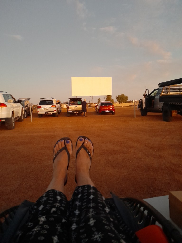 Eventually we headed back to Koorda to make sure we were in time for bounce down. On the way back in was called past the drive in. Oh my, what a blast from the past. My teen years came flooding back in full colour as we stood there soaking it all in. Koorda, I will be back to watch a movie and why aren’t you showing the footy on that big screen? Actually we thoroughly enjoyed watching the footy at home between the vans. After barracking for our respective teams, debating the refereeing decisions and lamenting losing (or boasting about winning) we took to our own game of Battle Blocks. The footy has nothing on us when it comes to competition. We barracked, debated, lamented and boasted as though sheep stations were at stake (not really). So much fun in a dusty, dry place, in the dark and cold. Nowhere else I’d rather be!
