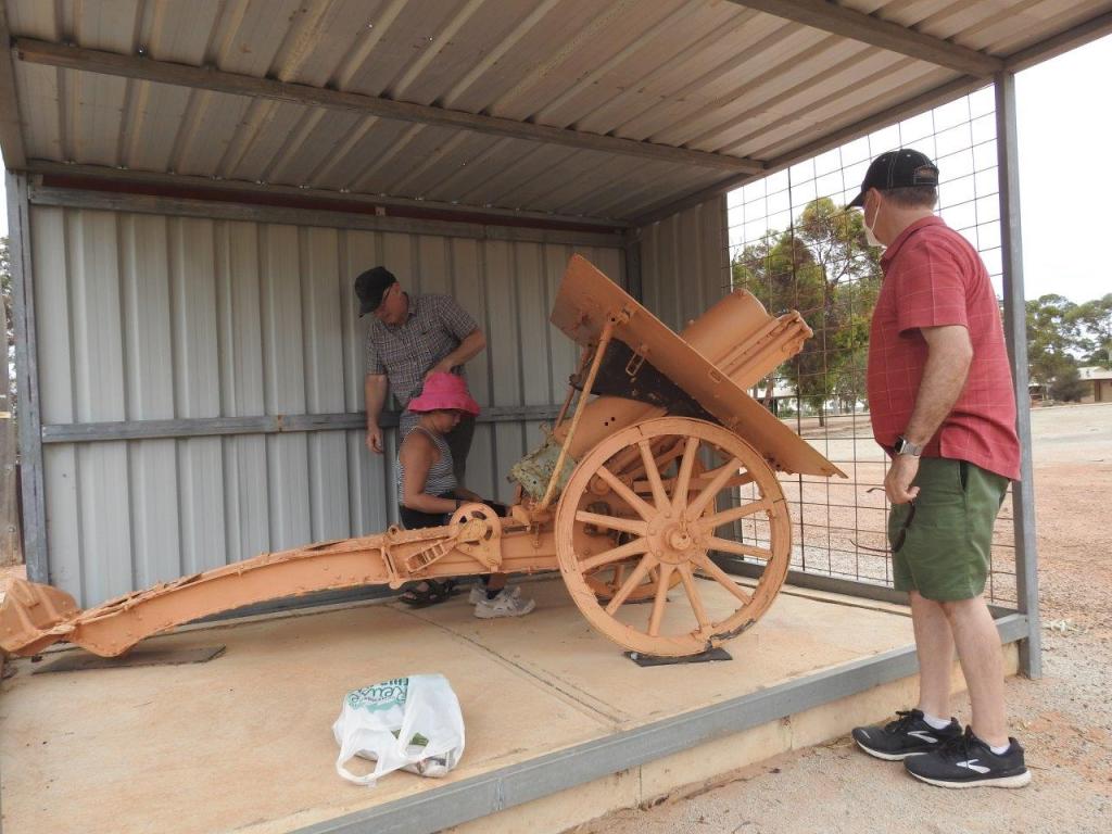 Our next stop was the Military and Motor Museum. It is very small, and I found myself lingering in there just because the poor woman opened it especially for us. If you are an old Holden lover, a Peter Brock fan, or like rally car racing, then you will like the museum. As a mum and (ex)-wife of a mechanic, I have seen all of this sort of thing before. I also learned to drive in a HK Holden (not the Kingswood!) and we owned a EH station wagon, a Torana and a commodore. Outside the museum there is an interesting war relic, complete with a geocache, found by the Little Jayco. Out and about, we wandered to the shop for a drink and on to the war memorial to grab the cache, before heading home for lunch. The flies drove us into our respective accommodation, but overall they weren’t too bad across the weekend.