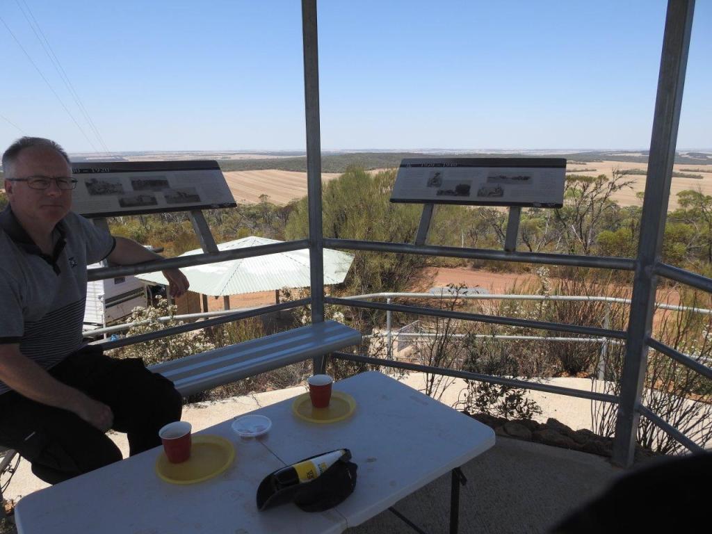One of the must do’s in Koorda is the Cooperative Bulk Handling (CBH) receiving depot tour. The CRC organised it for us and we were there on time at 9am, ready to learn all about the grains from the wheat belt. Nick and his little bloke Blair were our guides who took us through the main office to the grain sampling office, the weigh bridge (collectively we weighed 0.34t) and finally the store areas. So this season, about to start, CBH is expecting to receive 16.8 million tonnes of wheat @ $380 tonne. Barley will fetch $1000 tonne. In this area, one third of the 2021 expected harvest was lost on a single night due to frost, with cockatoos helping themselves to grain as well! Once checked and weighed, the grain is stored in the round storage area you can see in the pictures, holding 26000 tonne while the 150m long storage area can hold three different grains if needed. If you get to town do what you can to do this free, informative and interactive tour.