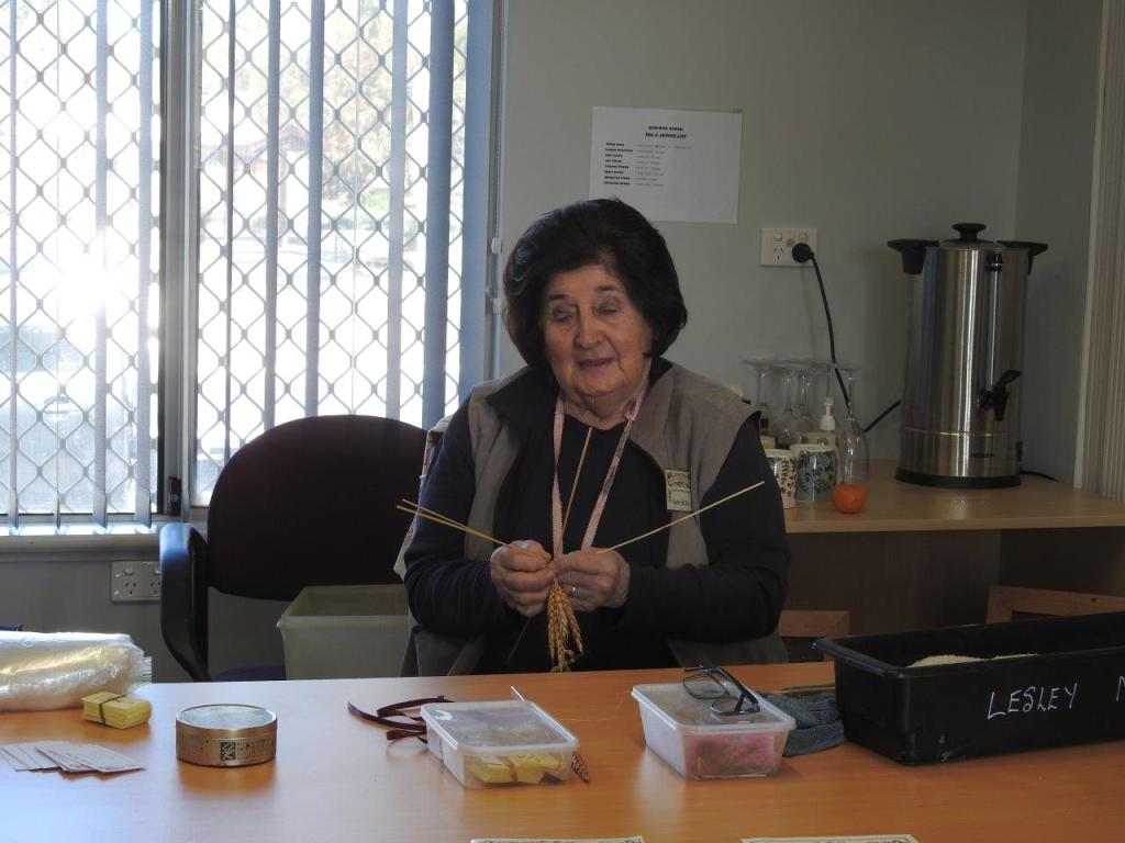 As it turned our, forgetting the iPad was a good thing because we had to drive past the information centre and saw a sign declaring there would be a corn dolly making demonstration at 11am. And it was 10:50! Meant to be! Kindly, Mr P humoured me and in we went to meet a corn dolly maker, hear the story of corn dollys in Koorda and see a demonstration of plaiting. We got lucky being early because the caravan club turned up not long after our personal chat with the artist wrapped up and we were able to make a quick getaway, but not before buying a corn dolly for posterity.