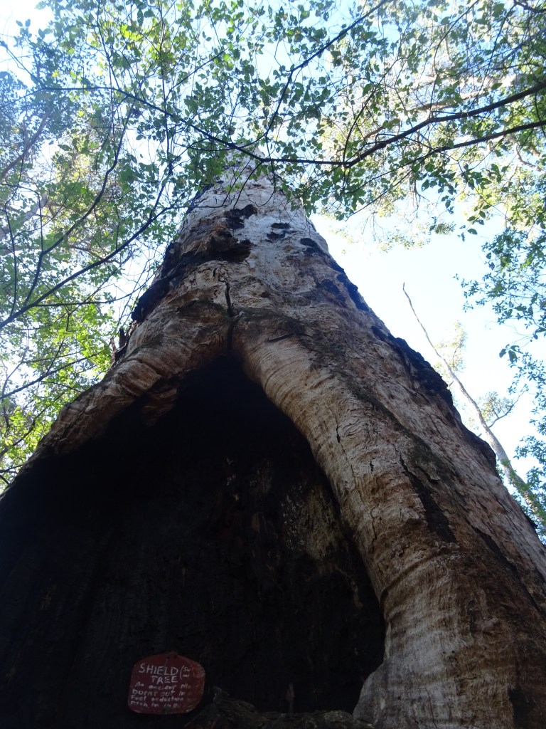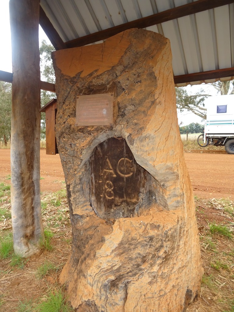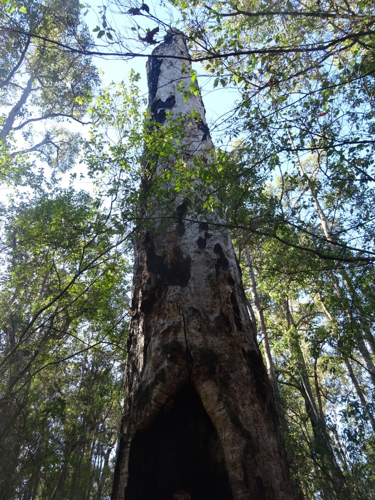 Sunday morning, after greetings from the Maggies, we headed off without a plan and found Boyup Brook and some good coffee. On the way we detoured around to have a look at the Gregory Tree. This is a nice little bit of history that had us speculating on the life of a surveyor. I think he would have had a hard life, a victim of the climate and landscape. Our detour took us through Dinninup that looks like a cute place to explore another time, perhaps around the time of their annual ag show. Late starts mean that lunch comes around quickly and we needed water in the rig so we headed for Bridgetown and used wiki camps to locate a tap. I got an opportunity to add to the entries, making note of another available tap. Thanks to the app we have located many great places to stay as well simple things like water. The map at the info board suggested that the Jarrah park just outside Bridgetown might be a good stop for lunch so we headed there. Indeed it is a great stop and we had a lovely spot to enjoy our lunch before going for a walk among the tall timbers for a well hidden cache.