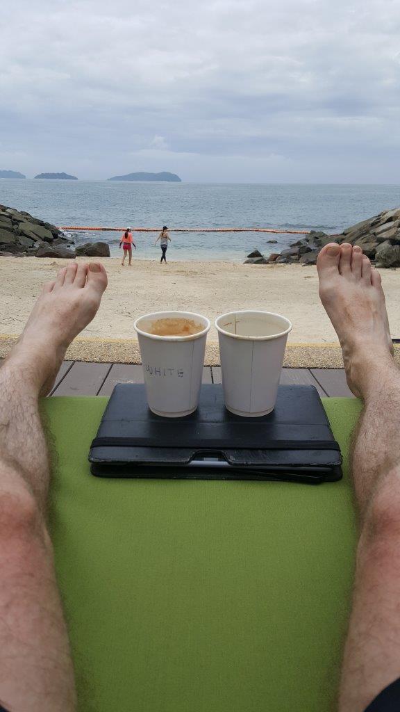Kota Kinabalu is a humid place, apparently bustling with activity, based on our Grab trip to the resort. We are staying in a beautiful place that has everything we need on site, so we spent the rest of the day unpacking, exploring the options and then taking a walk to the shops for some snacks. The balcony overlooking the ocean made for an awesome venue for evening drinks and dinner. I think we are going to enjoy this part of Malaysia too.