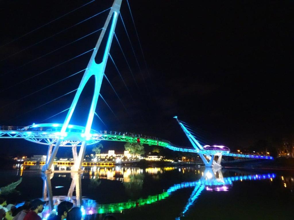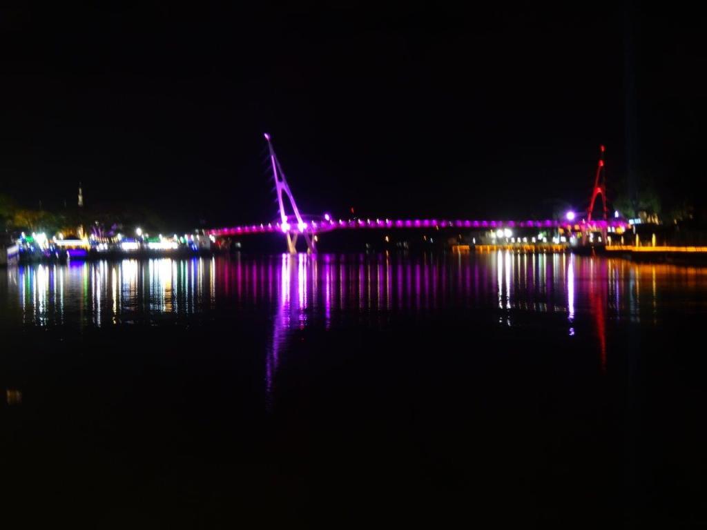 All relaxed, we headed to the supermarket and stocked up on some essentials before heading home for a rest and to check the status of the washing, spread all over the apartment trying to dry in the most humid of weather. It’s never a good idea to stay at home when you are on holiday. There’s a good chance you won’t go back to wherever you are. I have this fear so I am always keen to go out again. Armed with the umbrellas we headed to the bridge we could see from the balcony, in the hope that we could cross over and wander along the other side of the river. There is a cake hop and a food hall over there that look like they are worth investigating. Alas, it wasn’t to be, thanks to a thunderstorm. I love thunderstorms, but not when I am standing on a bridge that has loads of metal on it, or when I am holding an umbrella. Luckily it didn’t last long and there are undercover areas along the bridge.