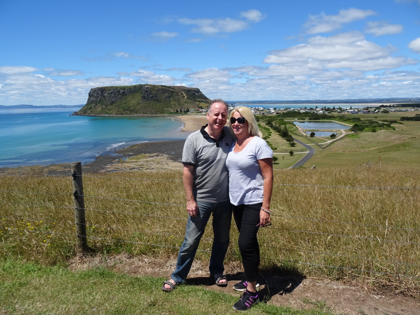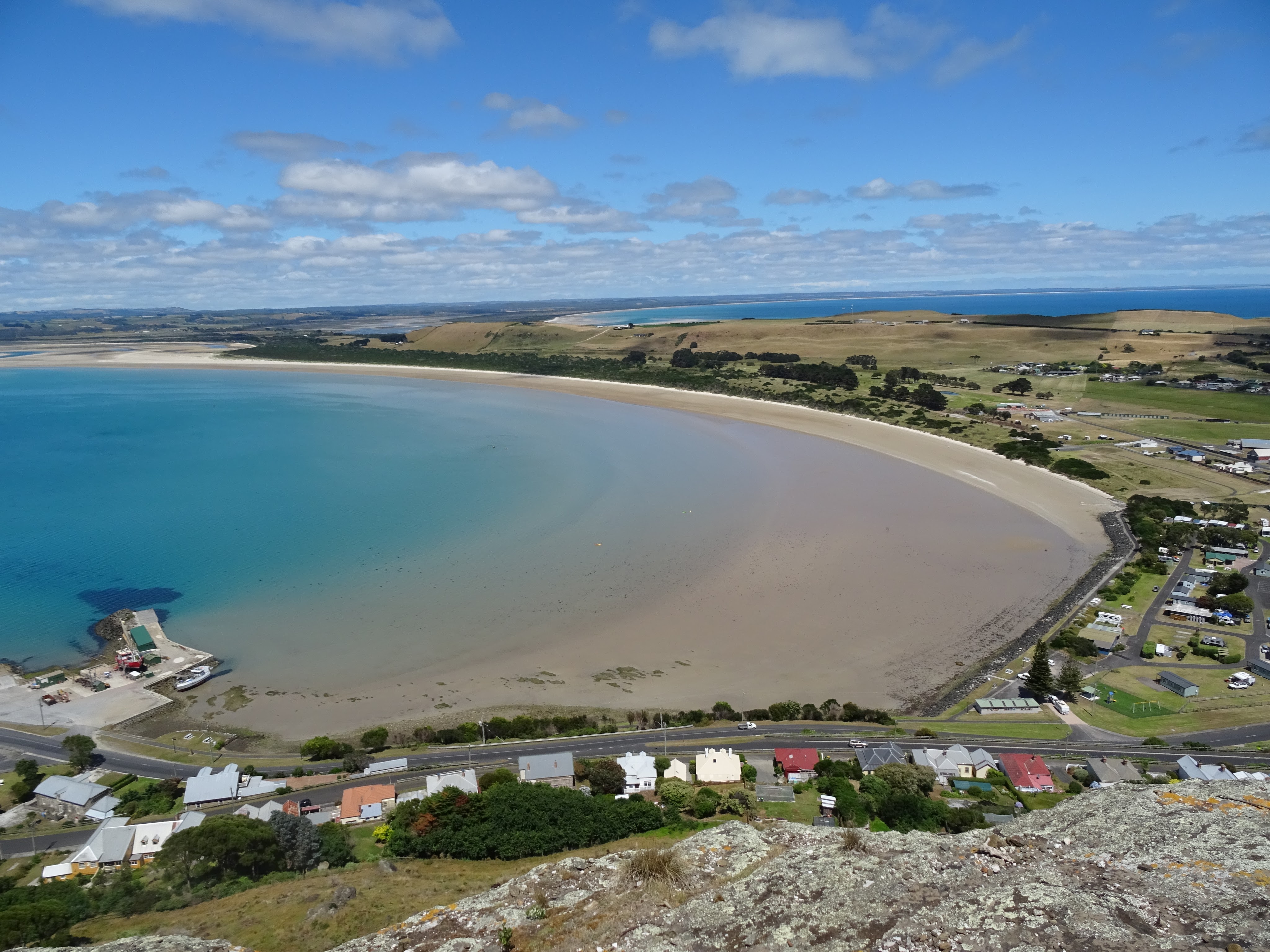 Goodness me that’s good for the thighs and lungs. It’s well worth the effort! The view from the top is phenomenal and we were lucky to spot an echidna, be escorted by monarch butterflies and have our path crossed by a blue tongue lizard. We also secured a Tassie geocache! Back to the view. I had no idea that Tassie has such pristine, crystal clear water on stunning beaches. To the east the beach stretches into the distance with a view back many kilometres. To the west I’m fairly sure I can see the edge of the island and more closely, the beach at Stanley is so inviting. The barmaid at the pub in Cobargo wants to travel the world to see clear water and pristine beaches. She should stay home and head straight for Tassie! I’m certainly impressed.