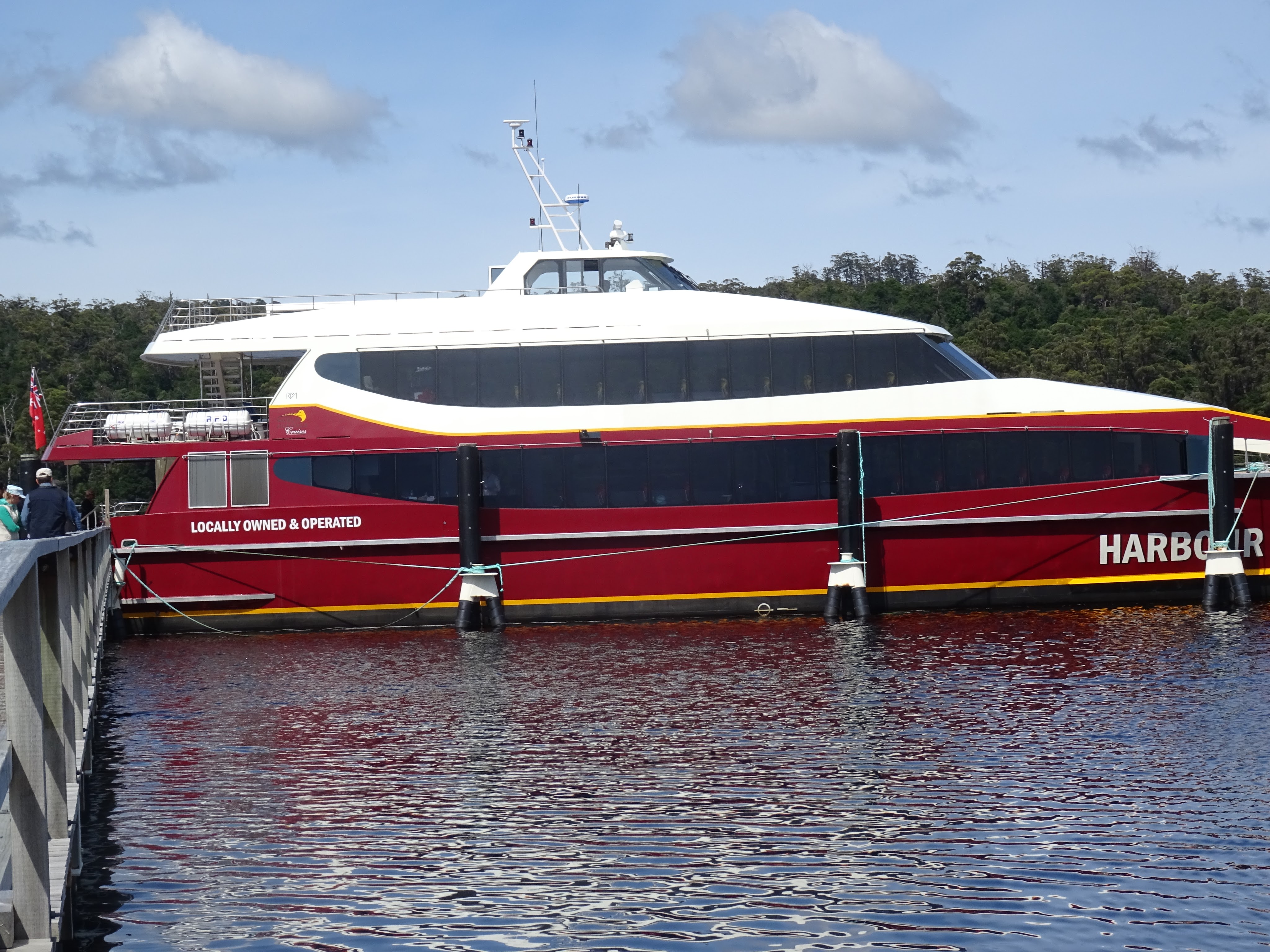 Our first and hopefully our only early start came as a bit of a shock this morning but we made the dock in more than enough time to take our seat on the red boat to spend the day touring Macquarie Harbour and the Gordon River. There is a choice between the Red boat and the White boat and by all accounts either is fantastic. We chose randomly and elected to take the mid-range option price wise. If you want a day without kids, I suggest you take the high end price option as it would be prohibitive for families and you would be unlikely to encounter the kids on the top deck.