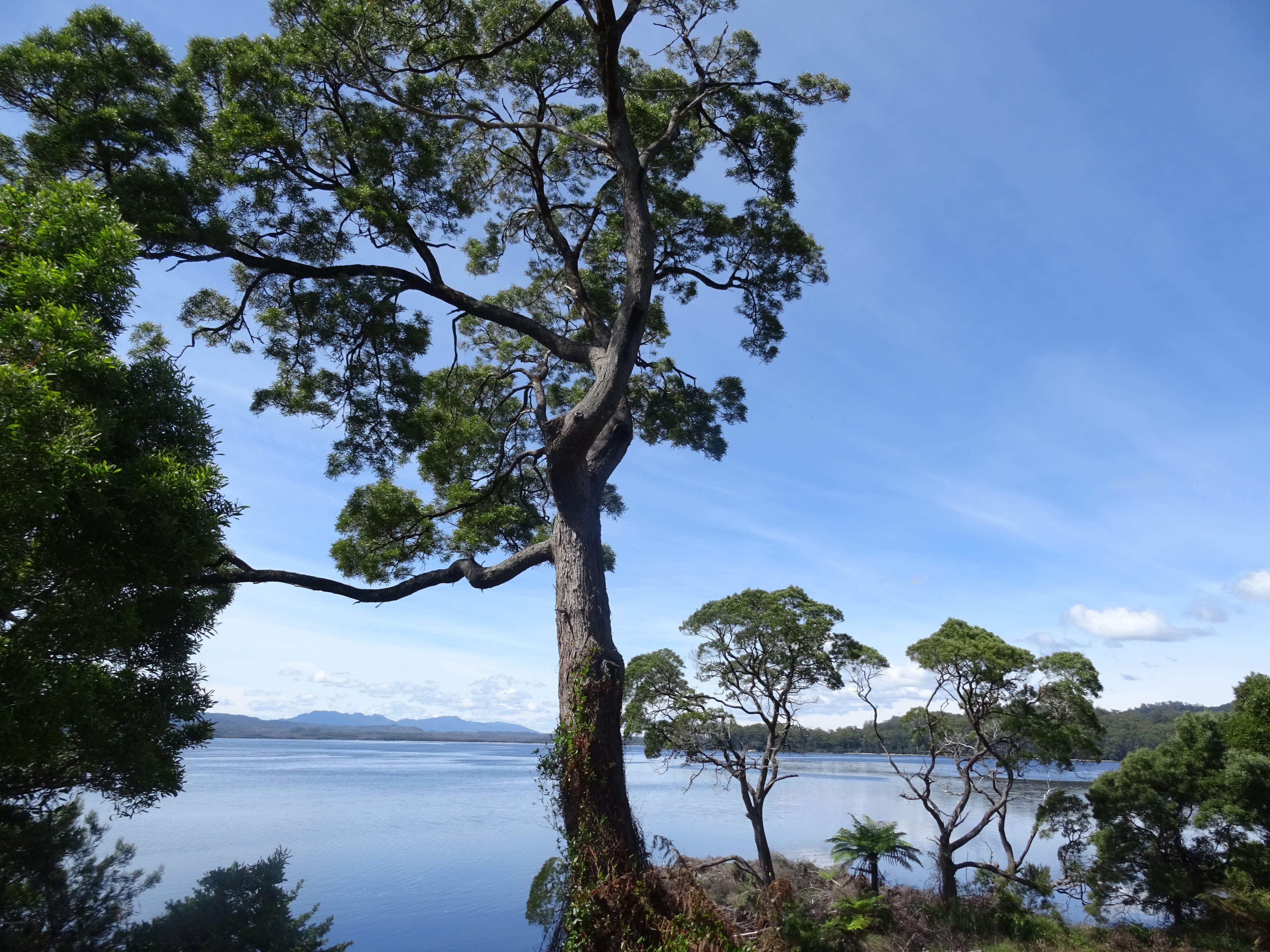 The next part of the day involved lunch as we cruised a long way up the river to disembark to view the Huon pine and other plants. There is not much else in the forest or the river, it’s naturally devoid of animal life, but the greenery is fabulous. We did learn all about the Huon pine when we were in school and I always imagined it to be a majestic and towering tree. It isn’t! It’s more like a messy, stubby, ugly attempt at a tree but it has a divine, hardy wood that is exquisitely scented and very easy on the eye too. On our way back to the dock in Strahan we got to chat to the captain as we hung out in the wheel house and even sat in his seat! This was a fabulous day, we would both highly recommend and a great way to spend Boxing Day. Back on dry land, if you have the time, there is a demonstration of wood working to watch and a play to see. We didn’t have time for the play but we watched a little of the demo before we wandered through the shop admiring the pieces. Of course felling Huon pine is now banned but logged trees can still be retrieved by those with permits and occasionally trees logged many decades ago still wash down the river in floods. As we left the shop I decided to buy a piece of Huon for $10 in the hope that it can be made a feature at home above my dining table. In the meantime, it’s going to make the camper smell nice!