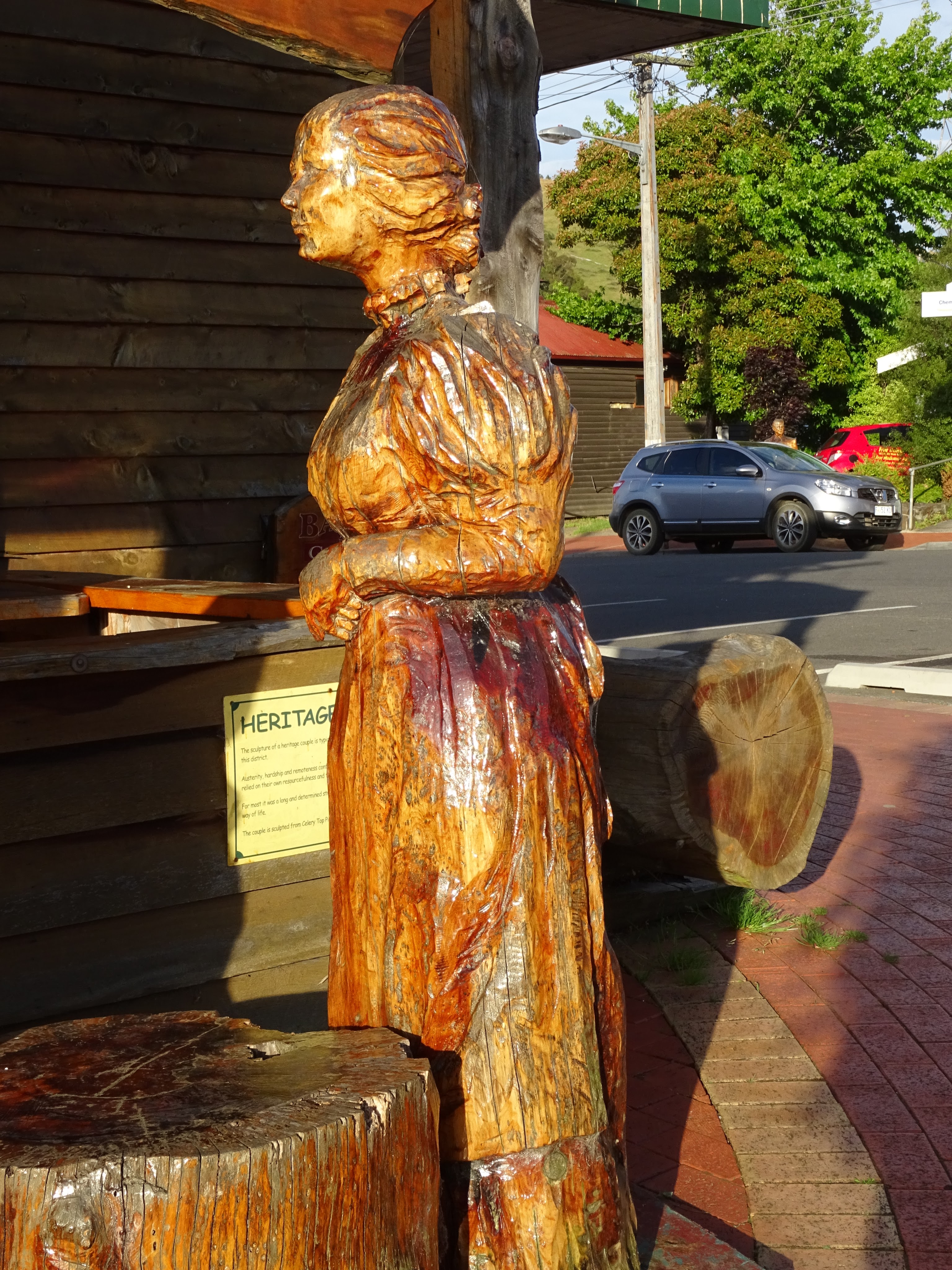 So without having found the falls, despite a lap of the town, we pushed on to Deloraine for coffee. We found the Cruising in the 50s Diner but were hugely disappointed it was closed. In peak holiday time. Instead we went into town proper, had a lovely coffee in a place with some fantastic bush furniture, before we wandered this very busy, very bright little place, ending up having a chat with the steam punk guy who makes a mean boot The Drummer would love.