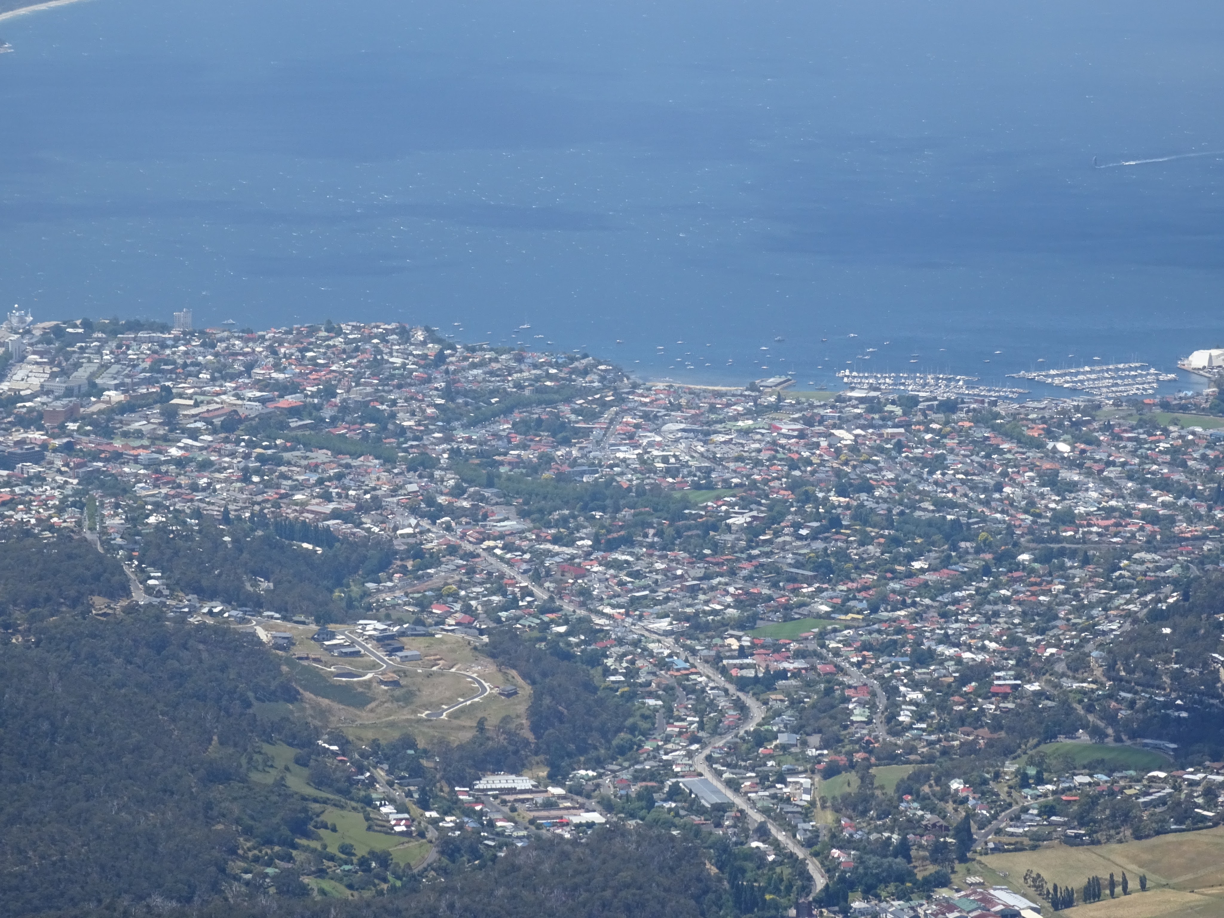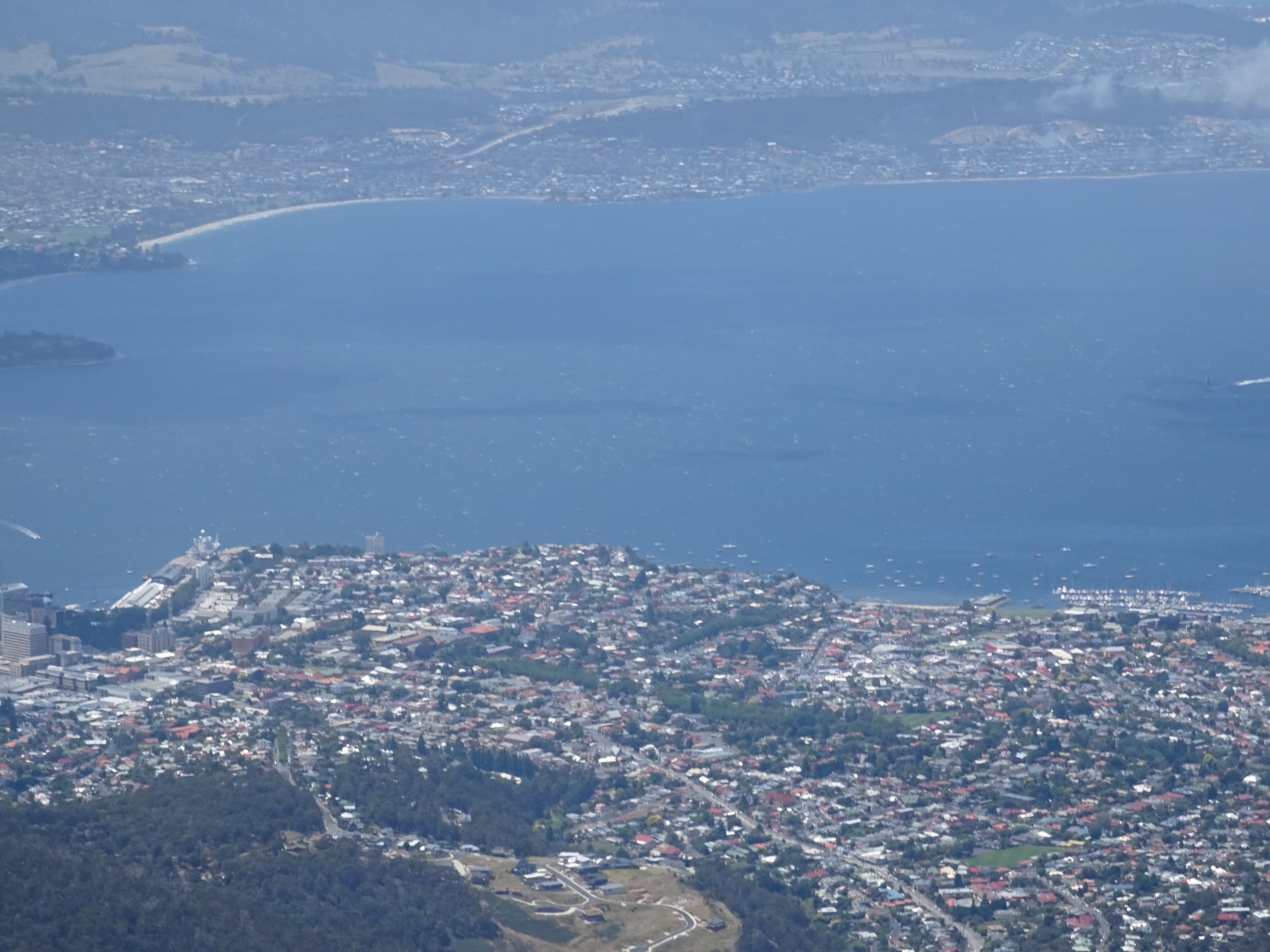 First stop today was Mount Wellington. If I knew then what I know now we would not have taken MazStar up there! It’s a heck of a climb for a wide car, carrying a heavy load and allowing others to pass going the other way. But the view was worth it! It was a little windy but not cold when we were there and we could see a long way in all directions. A word of warning if you go up, lock the car with the key, not the remote as apparently the antenna can disrupt your central locking. No such worry with Maz. Central locking doesn’t exist!