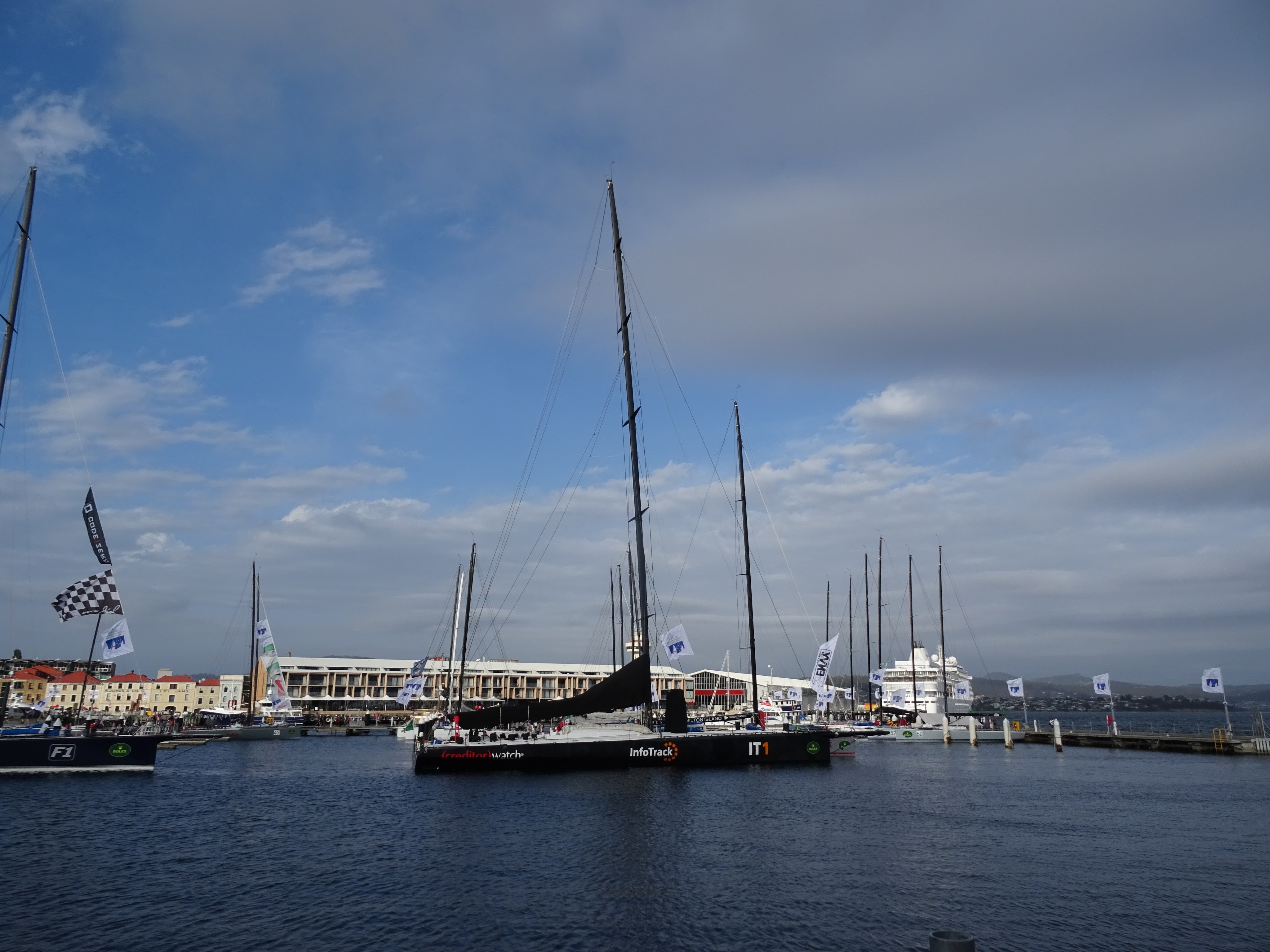 As is the way with us we managed to coincidentally time our visit to arrive right as the contention about the winner was resolved. Sorry Wild Oats XI you didn’t win after all. Give that trophy and honour to Comanche and behave next year. It was great to see the boats up close, without crowds and be able to walk right up to them, look all over them and see instrumentation and panels. I’m glad it’s not me that has to sail from Sydney to Hobart with just the wind. I’d need a few more travacalm to cope with that.