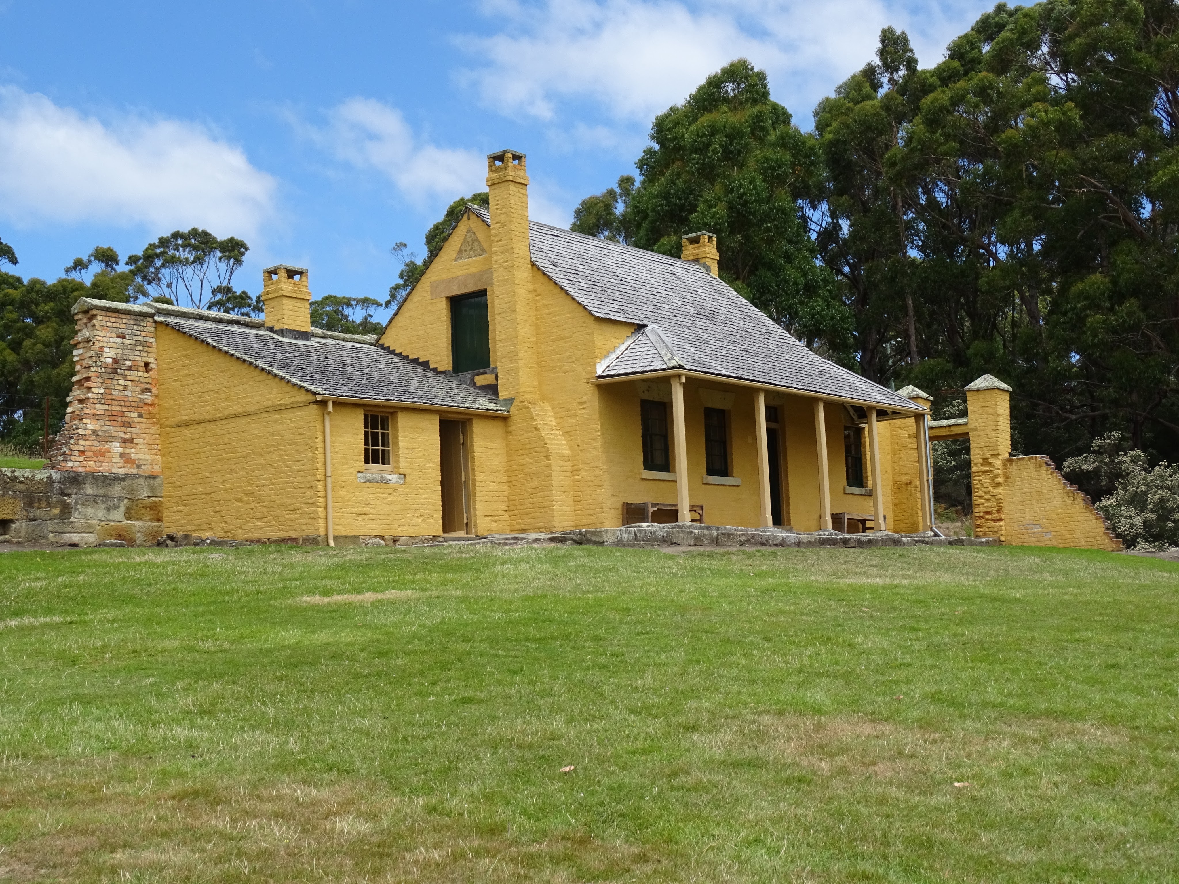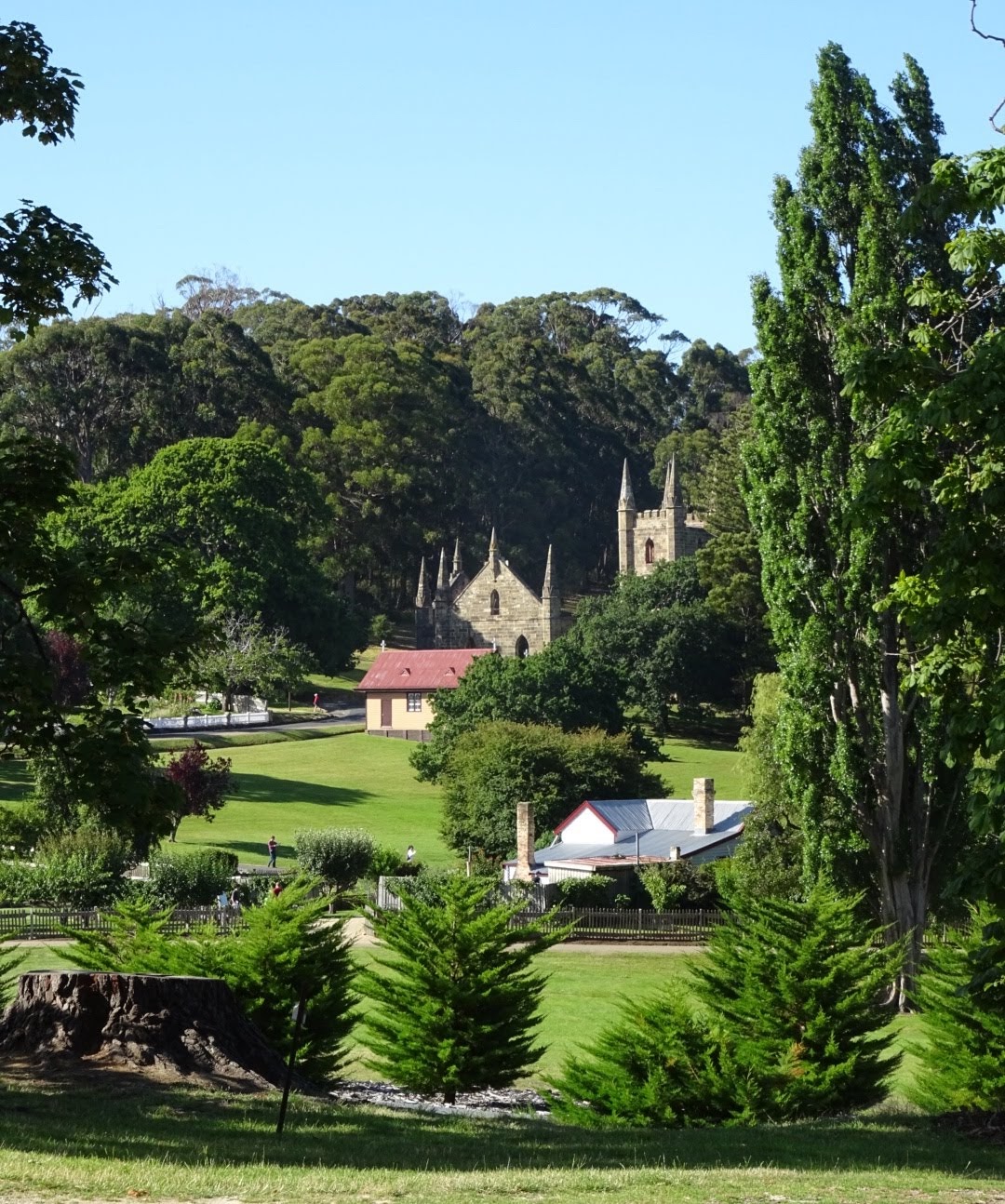 Despite our exciting and tiring night out we wanted to make an earlyish start on heading to Port Arthur. We took our time on the road though and arrived there about 11.30, with heaps of other folk. On the way we were reading about the horrific massacre that occurred there in 1996. As we drove in and arrived at the site these events were upmost in our minds. After our coffee stop we joined the guided walk to learn some of the convict history that is both interesting and scary. For instance most of the convicts were not hardened criminals. In fact that had committed misdemeanors yet ended up transported to a land far away. If they became criminals its no wonder, given the conditions they had to endure and the punishments inflicted on them. The cat o’ nine tails sends a shiver down my spine thinking about how it ripped skin off the spine of others.