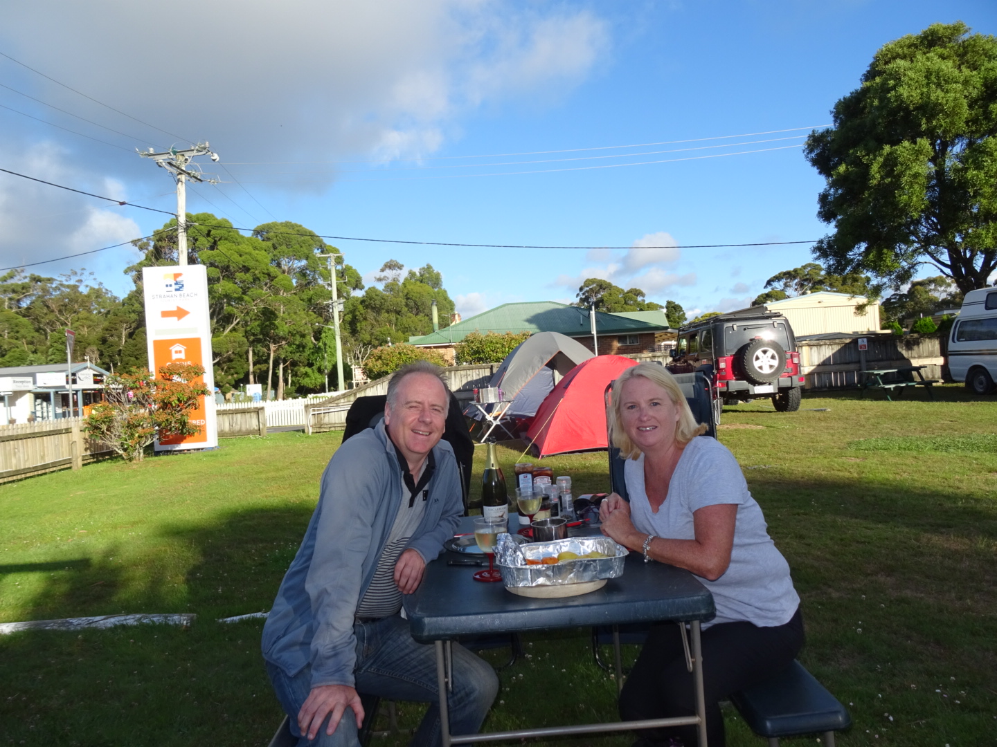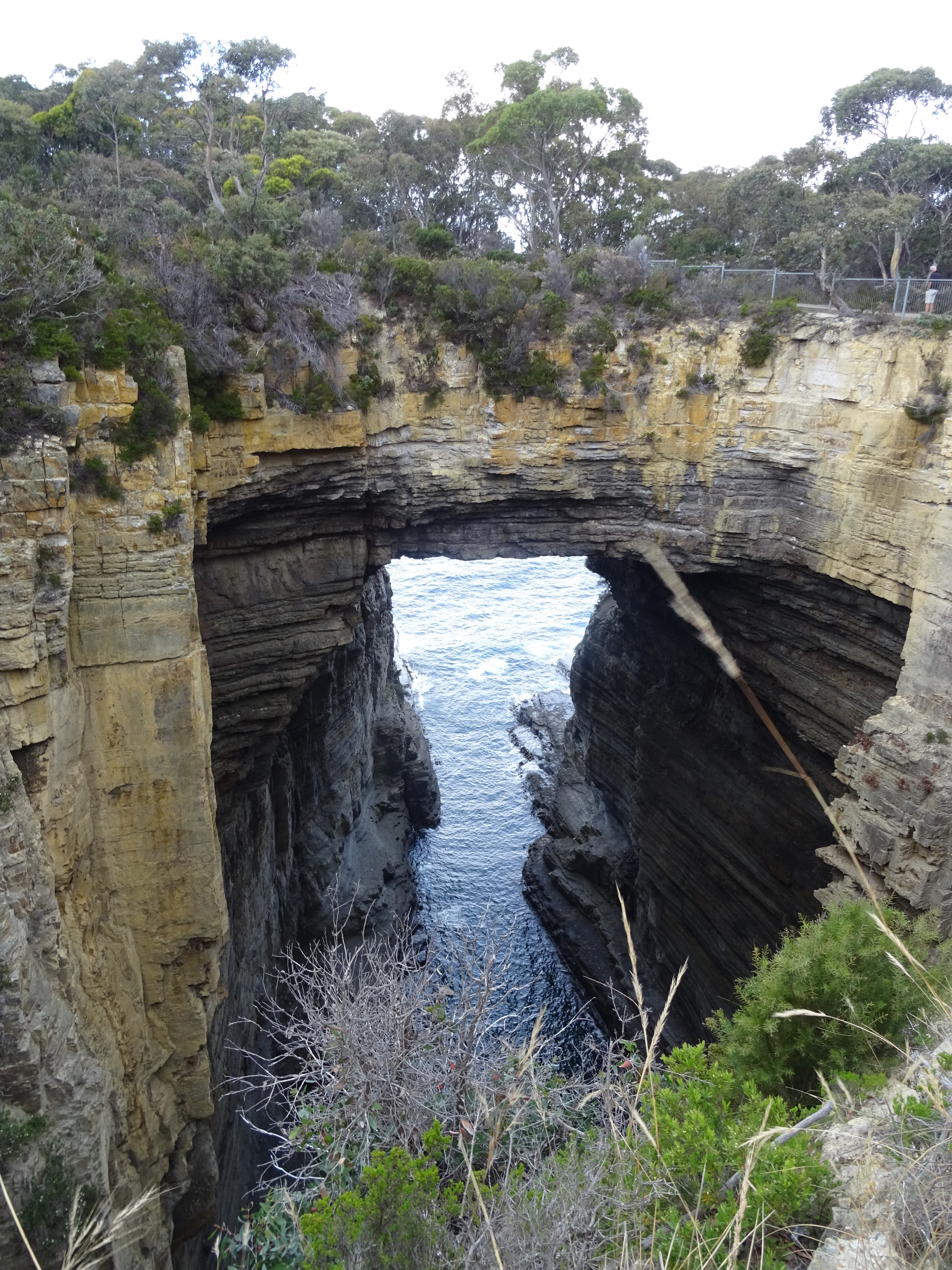 After such a busy day we needed a place to stay but everything was either full or required campers to be self contained. So we made the easy decision to head back to Hobart Showgrounds via the Blow Hole (not blowing), Tasman Arch, Pirates Bay, and the Tessellated Pavement. Of course, we arrived back at camp very late in the evening but our spot was waiting for us, with a great view (of the gents toilet door). Goodnight to all.