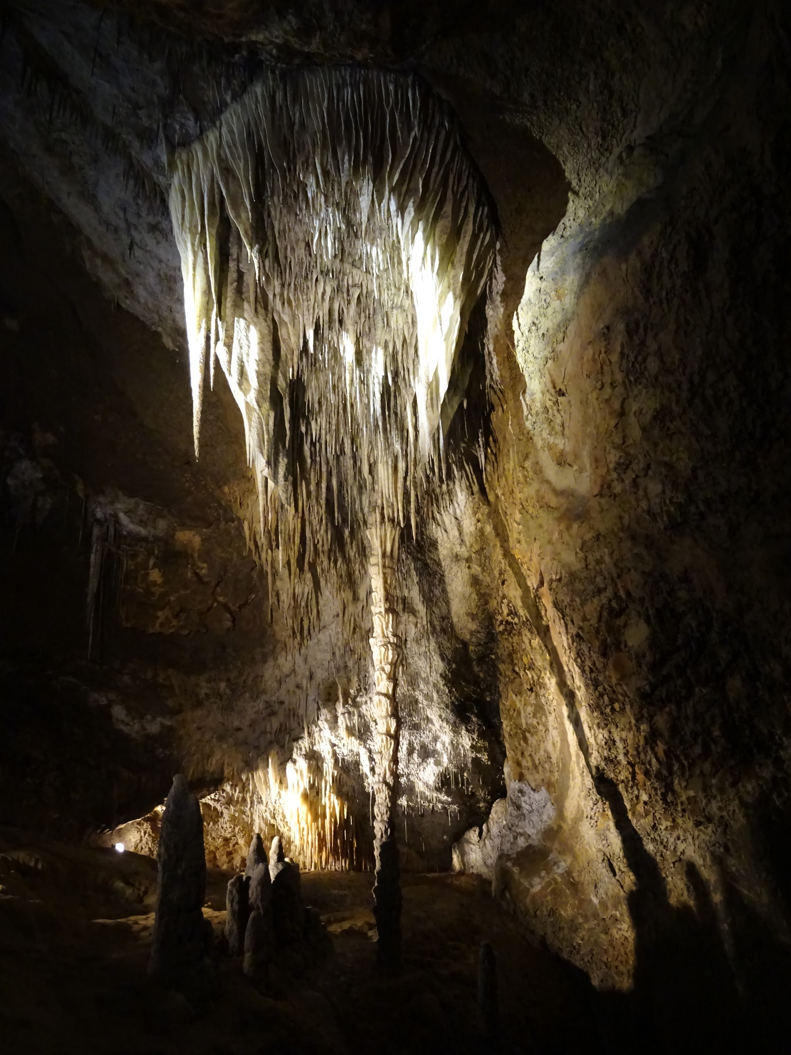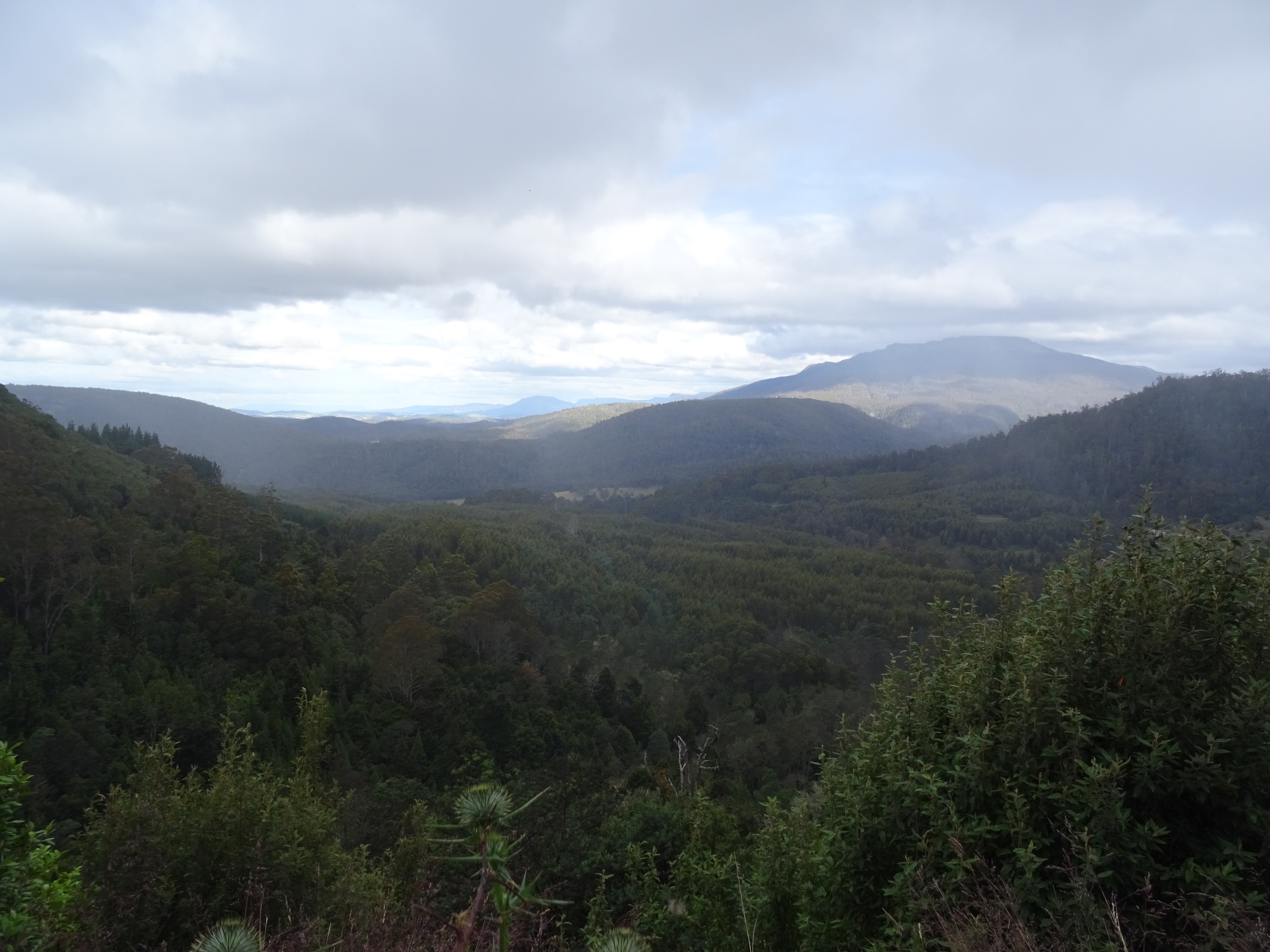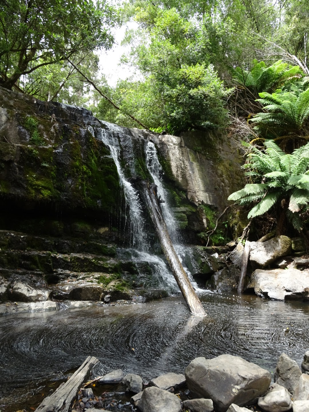 Although I do get a little claustrophobic, we decided to venture into the Marakoopa caves. We secured our tickets and then had one of our typical cheese and bickies, cashews and sparkling water lunches, while we spied an echidna in the bush. The caves were worth the money and the short trip there. Our guide was an interesting bloke, perhaps a former school teacher. He wasn’t actually patronising but he wasn’t overly approachable if you had a question. But if you got an answer to one of his questions right, Bingo! With all our new knowledge of stalactites and stalagmites, shawls and flows, we headed on a round trip of Mount Roland, gathering a few geocaches and finding some beautiful scenery, including a trickling fall and great mountain scape.