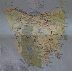 As always, we had the geocaching options open to us so we had a look at what was around. We found one right on top of Tassies belly button! That’s The Newby standing on it in the picture at the top of this page. As you would know if you’ve read my stuff before, I like locations like this. So we had to stop and retrieve the cache. In doing so our shoes got covered in nasty, sticky burrs that looked so cute, like little furry balls, but stayed put like Velcro! So, over morning tea at the not so scenic hydro plant down the road, we picked them out before heading up the hill to lookout over the hydro. Having free camped the night before we were both keen for a shower so we gladly forked out some dollars to clean up in Hamilton before heading into a local cafe for a nice lunch with Milly the delightful (read painful) 4 year old. She is the owners daughter who decided to pull up a 3rd chair and join us for lunch. She commented that The Newby speaks a different language so he must be from Thailand. He said no (I was ignoring her, hoping she would go away), so she went through a lot of countries (like the Northern Territory) before we told her he was from Scotland! “I’ll remember that because my uncles name is Scott”.