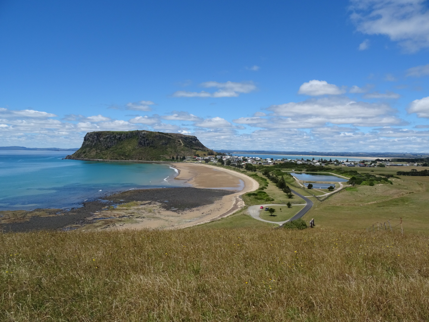 Our plan for this morning was to get some washing done, load up the MazStar with shopping ready for Christmas and head west along the coast. Fortunately it all went to plan and not long after 9am we were ready to go. This year we will be having turkey on Christmas Day. Our drive here to Stanley was very pretty, with so many options but we chose to book into the caravan park, just to be sure we wouldn’t be homeless on Christmas Eve. On the way we stopped for a walk and a pie in the town of penguin and found a big bird for our (now) annual big bird Christmas photo. Onwards we came across the sweet and very beautiful town of Boat Harbour with stunning blue water and beach views to die for. If we’d known about this place, and could have been sure of a spot, we definitely would have stayed here.