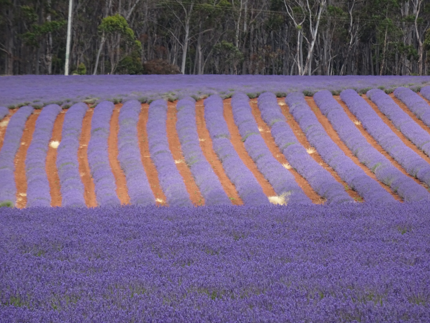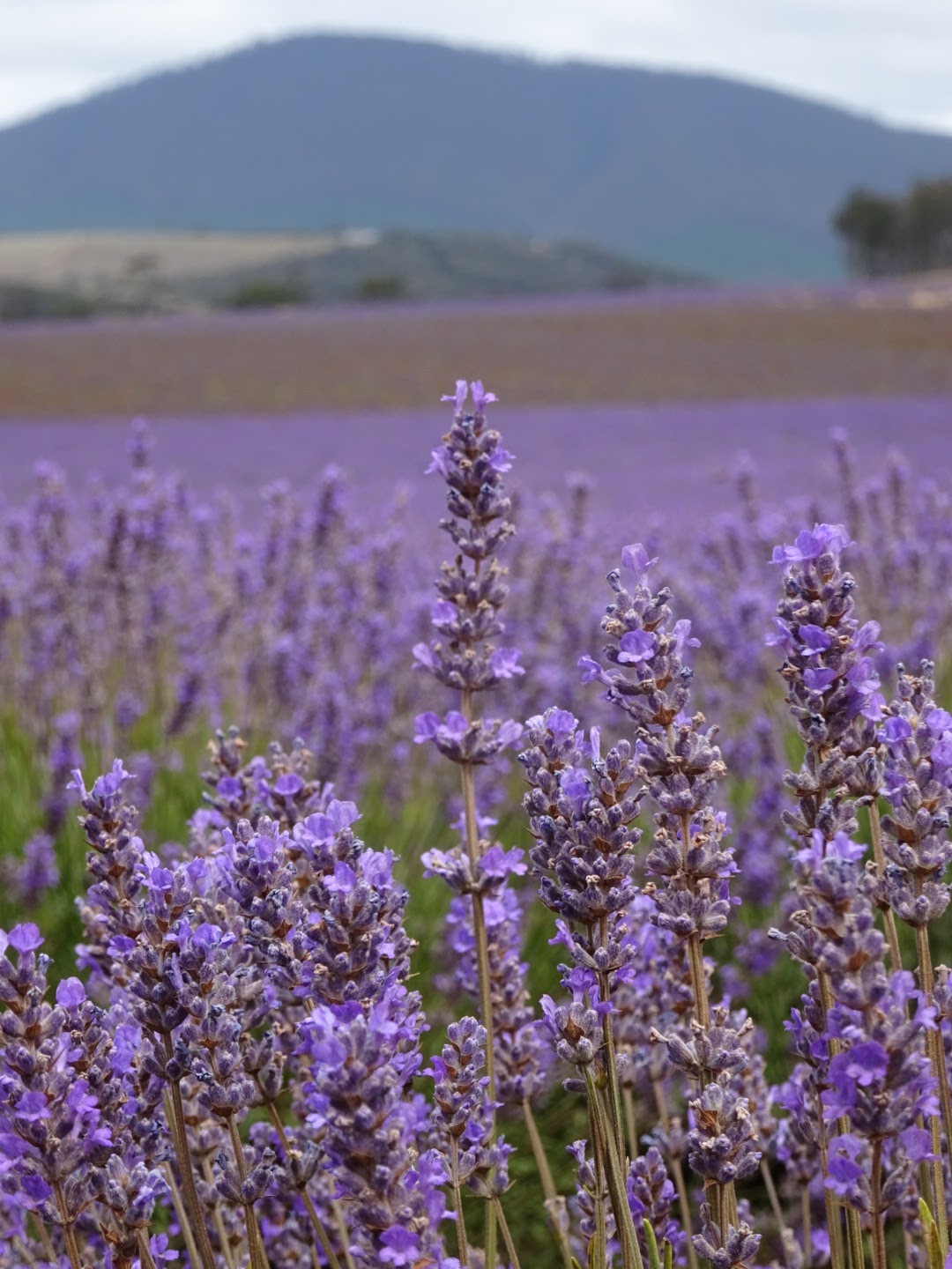 On one of my many business flights in another life I saw an aerial shot of a Tasmanian Lavender farm in the inflight magazine. Ever since then I have wanted to see a farm full of flowering lavender. Today we went and did just that. The Bridestowe farm has some 260 acres (or 200 kms) of lavender that was in full bloom and some of the best bloom ever. When we got there we treated ourselves to lavender scones with coffee before doing the really informative tour. Lucky for us there were only 4 people on the tour. We timed it perfectly as they have been getting more than 1000 visitors a day! So, they produce oil, gifts and are a tourist attraction. By my calculation they make much more money from tourism than lavender products, as they only produce 1000L of oil each year at $500 a liter. Each tourist though pays $10 entry, buys scones and gifts.
