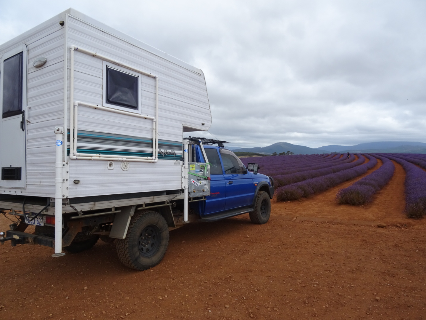 To lift our spirits we decided to treat ourselves to lunch at the cafe in Moina before we headed on a scenic drive to Devonport where we got our gas bottle refilled, nabbed a couple of caches and eventually boarded The Spirit of Tasmania II. Tonight the Maz is parked right at the front of the boat, behaving like Rose on the front of the Titanic, doors flung wide, the camper behind her. Ok, maybe that’s overkill in terms of my description. On board now, we had a simple sandwich dinner while trying to watch the cricket. My 24hrs worth of travelcalm has made me sleepy again. It’s time for an early bed, in anticipation of an early wake up from the purser. See you later Tassie, we loved you and we will be back! If you want to follow our travels to Perth click here.