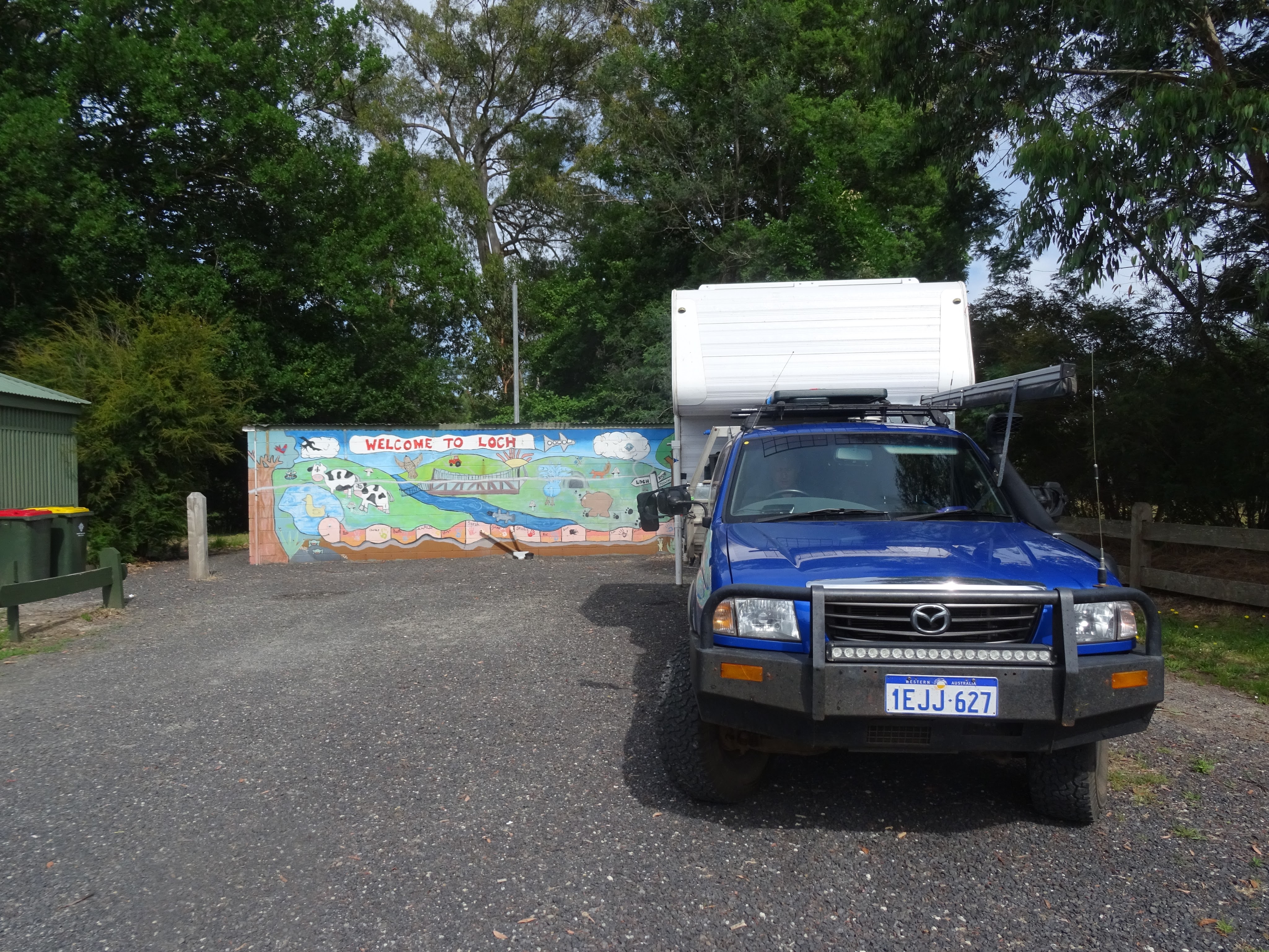 We should have made the bridge site our lunch stop, instead we headed on through Lakes Entrance and stopped on the side of the road in a toilet carpak. Not one of our better choices but at least we could sit inside and enjoy our creature comforts. Onward through Traralgan and Strezlicki we zoomed past the incredibly ugly coal mine and power station. Whatever damage the hydro 2.0 scheme causes I can’t imagine it could be worse than this eyesore. Tonight we are camped up around the edges of the cricket pitch at Loch. Not a bad spot at all with showers, BBQs and power (if you want it). Just us and another camper. Should be a quiet night by the memorial for Australian soldiers and the swing bridge. Tomorrow is the BIG day! Look out Tassie, here we come.