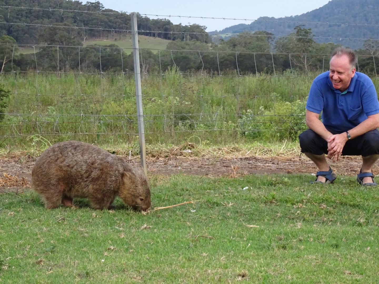 This site is owned by NSW Water and provides extensive, free camping along the Kangaroo river, an arm of the Shoalhaven. The drive there from the coast is picturesque, steep and windy but certainly worth the effort. The carrot for us was the promise of wombats. We eventually got there as the evening was starting, checked in with security, choose our spot and got ready for our first night on the road. On our way back from our short walk to the loo we saw our first wombat in the distance. The Newby was thrilled and we quickly saw another and then more. In fact, as we came back to our camper there was one using the undercarriage to scratch its back! For the next hour we were captivated by these robust and hugely cute critters as they trundled around with no regard for people or belongings.