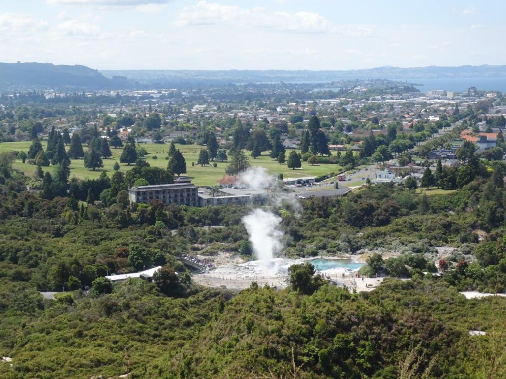 This is our first stop of more than one night. So today we had the chance to sleep in if we wanted to. No 10am check out to contend with. Instead we lazily got organised and headed off to Bunnings. No trip anywhere, anytime, is complete without a Bunnings trip. We needed the tools and screws to repair the step I broke three days ago. On route we explored the foreshore and waterfront, the baths and mud pools in the town centre (none too exciting) and stocked up on food. The beauty of having a camper is that you can shop and stock as needed. We wanted to experience mud pools and geysers but were reluctant to share the experience with 1000s of others in a paid attraction. A bit of research revealed that a short walk in the beautiful Redwood Park leads to a lookout above Pōhutu. This geyser is the largest active one in the southern hemisphere and we saw it erupting. Looking down it was very obvious that there were indeed many people in the attraction that encircles the geyser.