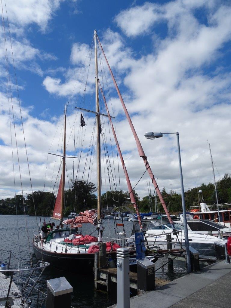 These carvings are not old in turns of world art. But they are fantastic. The main carving is a likeness of Ngatoroirangi, a visionary Māori navigator who guided the Tūwharetoa and Te Arawa tribes to the Taupō area over a thousand years ago. It is over 10 metres high and took the artist, Matahi Whakataka-Brightwell 4 summers to carve. It is a great sight, surrounded by other smaller carvings and the stunning water enhanced the carving beautifully. The lake itself sits in a volcanic caldera, is huge (the size of the island of Singapore!) and is flanked by a snow capped Mount Ruapehu. Dear God, there is snow in my summer holiday again! Fortunately our sail took us nowhere near the mount but it did involve a wonderful trip back to Taupo under sail. This part of the experience was fabulous. During this time we were invited to have a steer of the yacht as we were served with coffee or tea or a beer or wine. As a BYO we had a little bit of Chrissy cake with us that we enjoyed with our bevvie of choice. Unfortunately our journey came to an end all too soon and we were deposited back at the harbour with the promise of a boat ride again anytime in the future in exchange for timtams or a bottle of scotch. I would do the trip again any day and be more than happy to pay for it. It was great value for money.