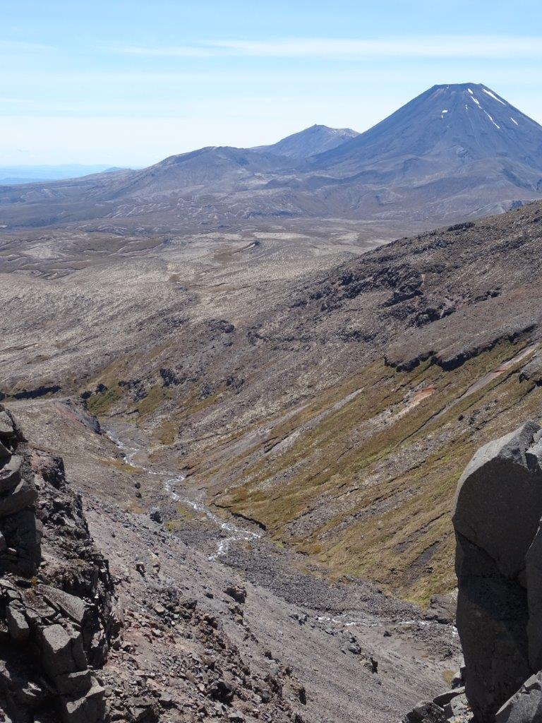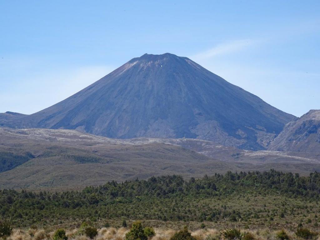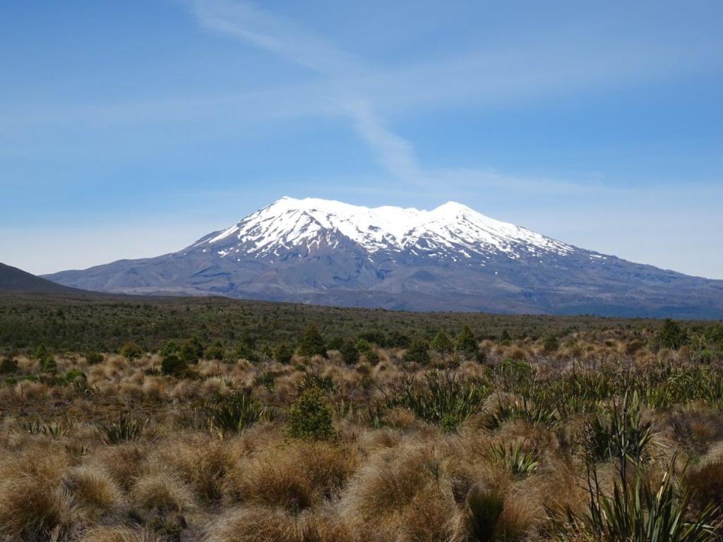 The plans for the next two days were not made at home. Instead we have no bookings for attractions or accommodation, other than knowing we need to be on the interislander ferry on new years eve. We have debated the pro’s and con’s of heading east to Napier versus heading south straight to Wellington or west to Whanganui. In the end I wanted to go west but I let him talk me into heading south (at least for today). So off we went to explore the area known as Tongariro National Park. As it turns out, this area includes the snow capped mountain we could see on our yachting adventure yesterday. I’m sure I recall hearing about Mt Ruapehu at school but the park includes two other great peaks as well. The first of these is Mt Tongarrio, the second is Mt Ngauruhoe and the third is Ruapehu.