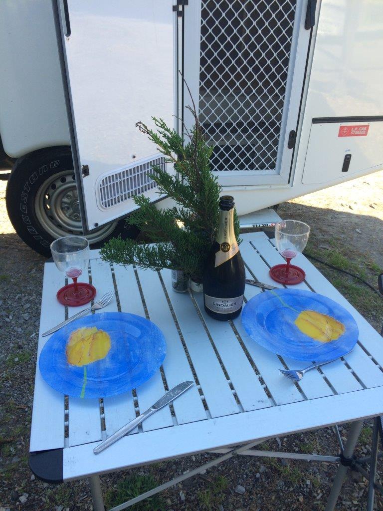 Those around us tried to capitalise on our find but we stayed put as they dug in anyway. The German young people constructed a perfect round pool complete with stubby holders and settled in for the afternoon. The English invaded the pool of our neighbours (who would have thought it??). The Asian pool diggers swapped and changed and begged and borrowed shovels, while other came and went. The crowd here was smaller and more fun than the crowd we encountered in Hahei, perhaps because it’s Christmas. If you’re headed here I do have one word of warning – remove all silver jewelry as it will tarnish in the high sulphur content water. I learned that one the hard way but at least I know for sure my ring, bracelet and charms are indeed silver. Finally we offered our pool to some neighbours and headed back to the caravan park for a shower before driving across the middle of the North Island to Rotorua. The trip is pleasant and we made the calls to family and friends, before arriving at the caravan park in the early evening but well in time to witness the MKR style frenzy in the camp kitchen. The kitchen layout was made up of at least 8 areas divided off with low walls, each comprising a full stove with an oven, a sink and prep benches. Being Christmas Day there was much activity and many meals being cooked and roasted. I was grateful for the BBQ and the plan to have a Christmas steak. I hope you had a fabulous Christmas Day too.