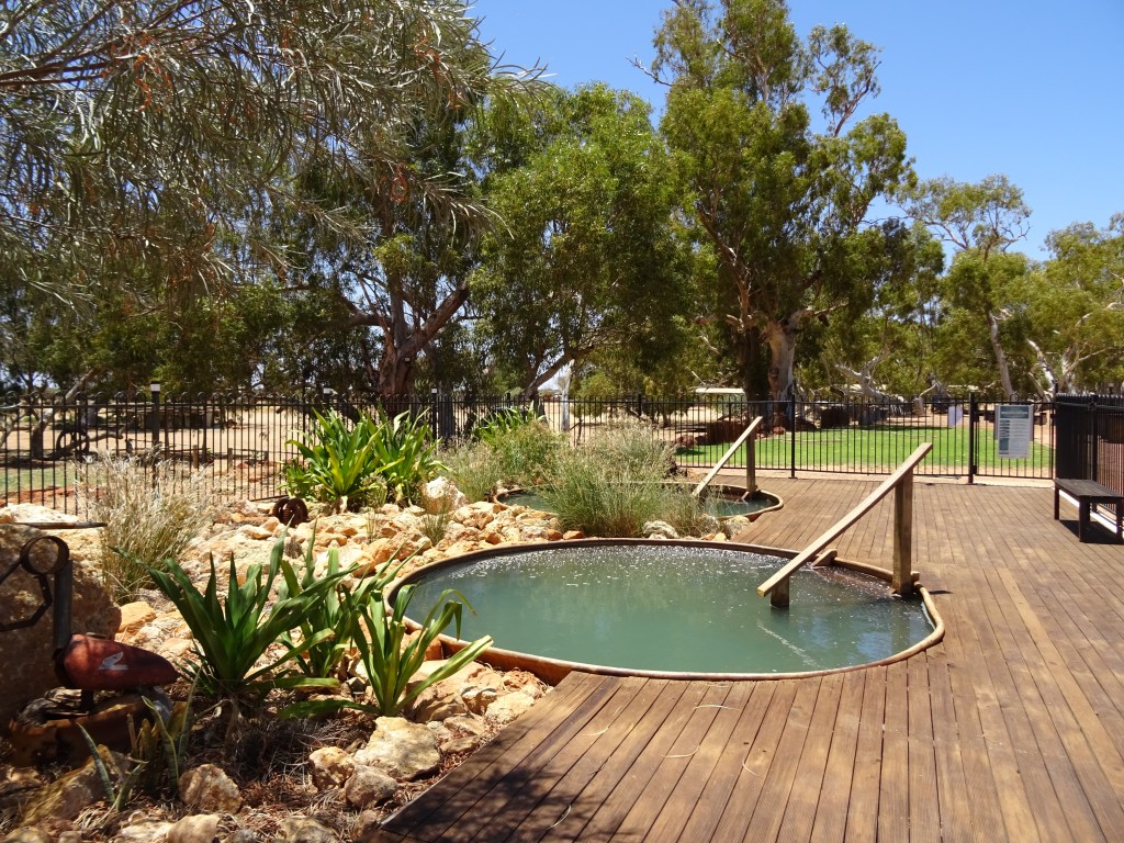 After a coffee on the riverside terrace we headed along for a dip in the artesian pool. The water is apparently therapeutic. Maybe it’ll help my dermatitis. It is certainly relaxing at somewhere about 33 degrees, straight out of the ground. It also has a tendency to stain things orange, thanks to the iron. I’m keeping my hair out of it for fear of it staining my expensive blonde colour! Although I think 10 days swimming in the Indian Ocean after we leave here will reverse any temporary brunette streaks.
