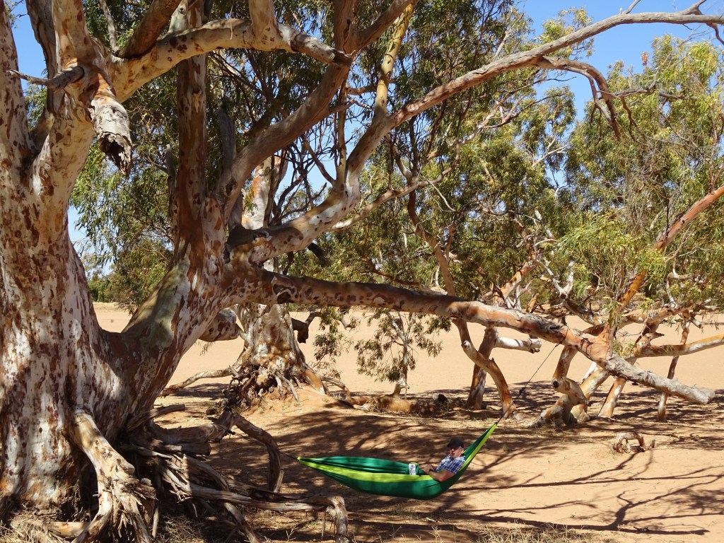 We drove 500kms today, arriving at Wooramel Station at 4.45pm. The plan is to relax here for a couple of days, to get into holiday mode. The drive from the highway to the reception is 2kms of lovely Australian corrugations that rattled Maz and Tas but Mr Bolo took it in his stride as did Maz. Check in was easy and we found an awesome riverfront site. It’s a HUGE river, flanked with river gums, home to equally huge falcons and their nests. The interesting thing about the river is that it is upside down. There’s not a drop of water visible because it’s all flowing underneath the river bed. They bring it to the surface for the artesian pools and the warm showers (no additional heating required). (Check out this footage of it flowing, just 10 weeks after we were there – February 2021). Needless to say, it didn’t take us long to get into swimmers and into the water. It’s the perfect temperature for me too. We timed our plunge with sunset and watched at least 8 satellites go overhead. The most we’ve ever spotted in an evening, all within minutes. Back home we enjoyed dinner overlooking the river at our million star site. We even saw a few falling stars. At this rate it’s not going to take long to get into holiday mode.