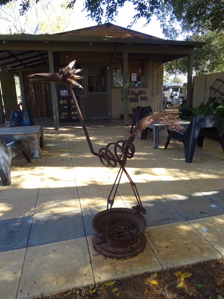 We were up and out of the park by 09.30 and had breaky at the cafe. Mr Orange Legs had a Big Kev’s breaky pie, with tomato, egg, bacon, meat and cheese all in the one square pie! Not for me at that time of the day, but apparently very good. Big D, would you do a pie for breakfast? We drove through to Exmouth, making the hardware shop before it closed, restocking our supplies of food and drinks, and nearly dying of heat exhaustion in the process!