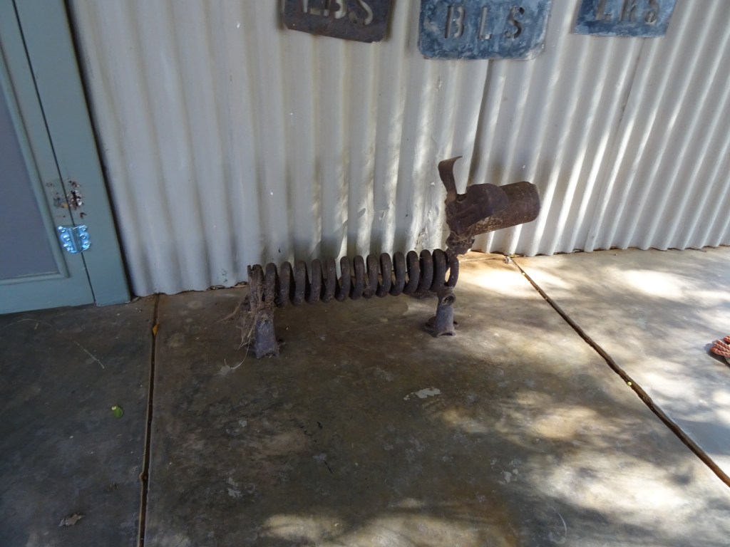 After that section of the trip we turned and headed back for the main road, stopping at the old shearer’s shed. It stopped working in 2006 but it has a long history. Can you put the photos in the right order from when the sheep come into the shed, to where they are penned and how the pens open and close, to where they they are shorn and how the shears get their power, to where the wool gets placed after it is sorted? Can you work out what machines are involved to make it into square bales, weighed the bales and lift them onto the trucks to go to jetty? Can you see where the shearer’s lived and work out how many bedrooms there are and where their dinner was cooked? In case you are wondering what Mr Orange Legs is doing with his big puffed up face and arms in the air, he is pretending to be a bale of wool being weighed (that’s a clue for your puzzle). Interestingly those scales went up to 5 hundredweight. I did get them to balance, moving the big and little weight along (can you see the part of the scales that is balanced? You can zoom in). So a bale of wool weighs up to 250kgs or about the same as that animal that eats the grass (have you worked it out yet?). Poor sheep. It must be a heavy coat to wear in this hot weather.