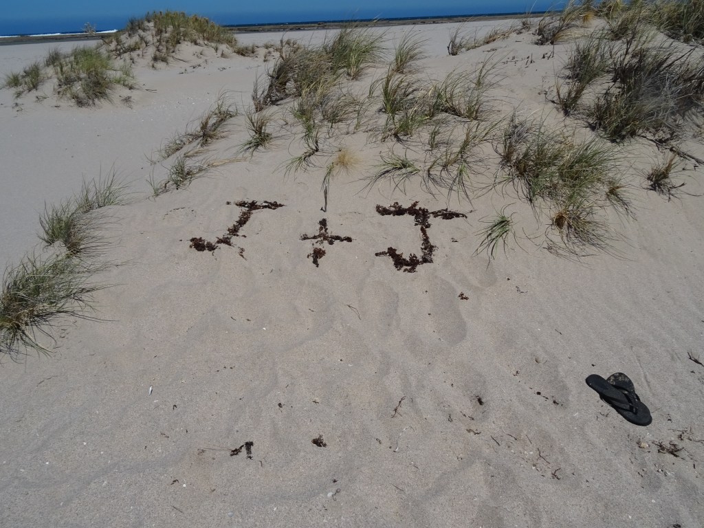 R, I think this would have blown your mind. A smaller turtle came out of the water just a few metres before starting to dig her hole. Pretty quickly, using her front flippers, she had a hole that was big enough for her to be in, with room to spare. At this point we approached her from behind and waited until sand stopped being flicked backwards. Then I crawled to the back of the hole and laid on my belly so I could look into the hole (just like in the picture). If I had wanted to I could have touched her, but instead I watched as she used her back flippers to carefully dig a deep hole about the width of a dinner plate. She did this so expertly! It was like she had scoops instead of flippers. The hole seemed to be about the length of my forearm. When she was happy with that depth she used her back flippers to line the hole and her tail extended into the hole and she laid her eggs! Remember I said that it would take a lot to beat the thrill of the joy flight? This just did exactly that! When she was done laying, she used her back flippers to fill in the hole, over filling it with a tower of wet sand, just to be sure. Again, she was so purposeful and precise. When she was happy with that she started digging so she could move forward and as she did so, she flicked sand backwards over the hole. She kept doing this until she had moved forward at least a couple of body lengths and completely covered her original hole. She was also completely covered in sand herself and looked exhausted. Mambo Man and I were completely speechless. Neither of us could believe what we had just seen.