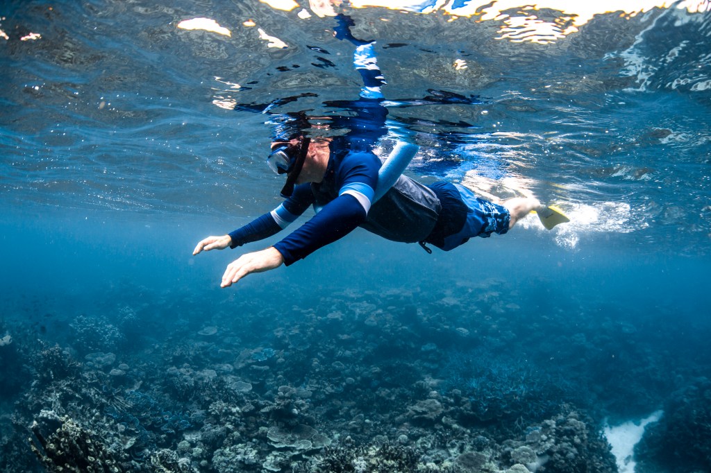 We had 2 snorkels this morning. Our first was a drift snorkel from the 5 knot marker pole, also known as the Osprey pole, around to the bay, and our second was in the bay. The drift snorkel took as through the lavender patch, an area of purple corals. My favourite colour! We saw so many beautiful corals and fish, ending in the knee deep, warm water of the bay. Our second snorkel was within the bay, which has some great things to see just over the edge of the sand bar. How great? Well, thanks to my super snorkelling abilities just before we were about to get out of the water I spotted Nemo! Little d, have you seen the movie? If not, you must watch it and tell me your favourites part. And if you have, you can still tell me your favourite part! The fish that we saw is actually called the Australian anemone fish. There was just one in the anemone, and it’s the only one I have seen despite the amount of snorkelling we have done. Lucky for Mr Orange Legs, I was able to float above it and find it again to show him.