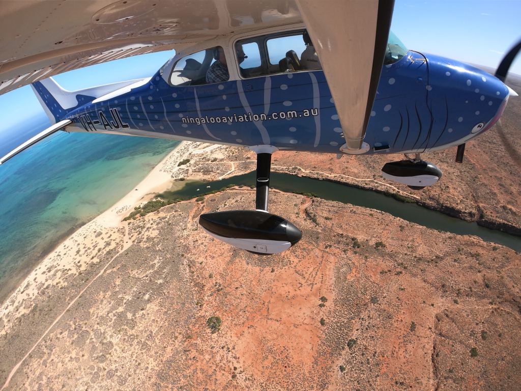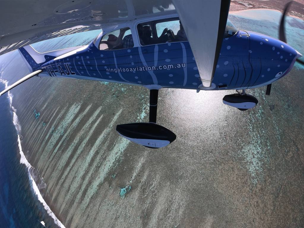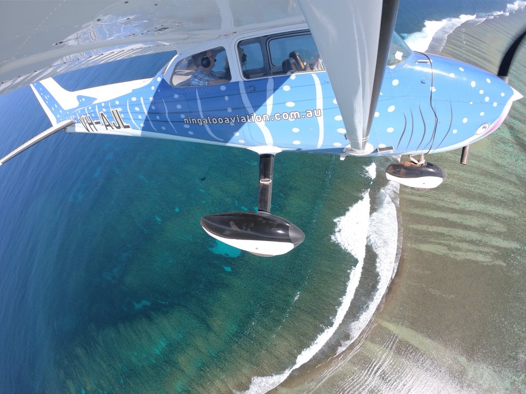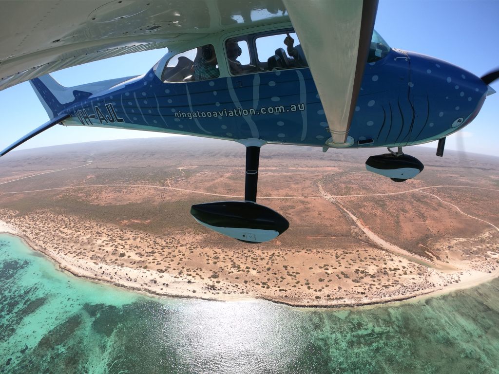 We arrived at the aerodrome at 08.30 and met Tiffany, our lovely pilot, who gave us a life jacket demo, before we boarded the back 2 seats of a 4 seater plane, painted to look like a whale shark. Tiffany put a go pro camera on the wing so some of the photos are ones she freely shared with us (used with permission) while the rest are mine. Here’s an interesting statistic showing that gendered roles are still alive and well in Australia – according to Tiffany only 6% of the 38000 commercial pilots in Australia are female. Let’s hope these stat change in little d’s lifetime.