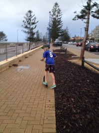 20th June – I got out at 1.15 and we were checked in here by 3.30ish. The kids are sooooo excited. They are stoked with the whole idea. The room is perfect, the view is good, the location is amazing and the facilities are fabulous. I got a great deal. Just filled a trolley full of Pringles, Doritos, Mars pods, nuts, biscuits, dips and lollies and then had chips and scallops for dinner with pineapple fritters! No amount of running is going to undo this weekend. Speaking of which, I ran along the Indian Ocean this afternoon. Very, very, very cool. And The Piper rode the new scooter. Too cool for school this little family.