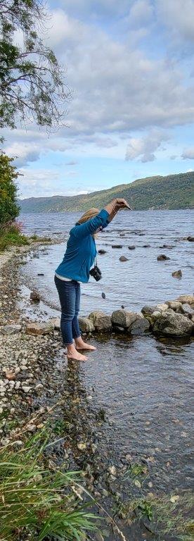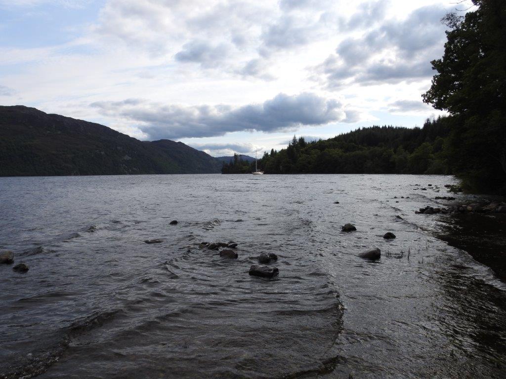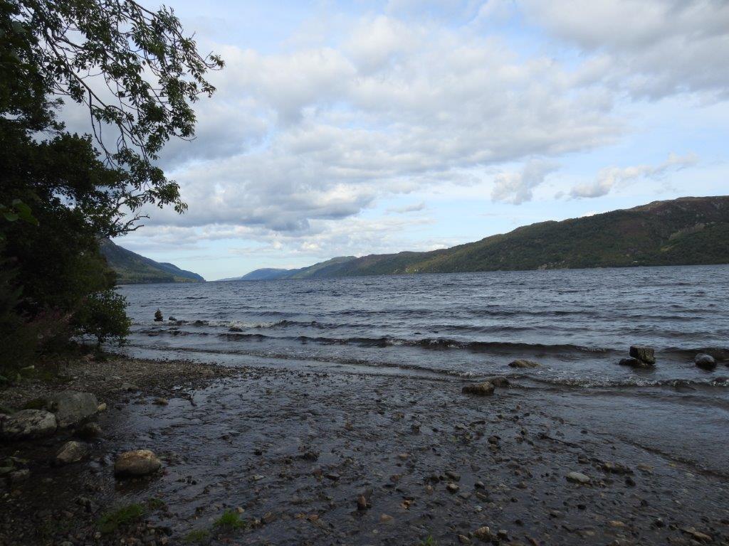 After scoffing our lunch we all set off, bound for our accommodation at Inverness. The others blasted off ahead in their cars, with a plan to meet up at Urquhart Castle. But I was in no hurry. I came here to see Nessy The Loch Ness Beastie. So, just along the way, we pulled over and climbed down to the edge of the loch.