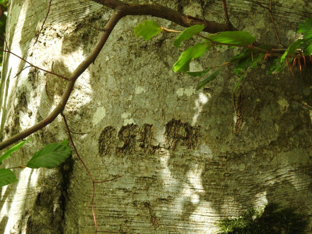 Just along from the bridge and the stream, our dad’s initials are carved into a tree, in the same way our Aunty’s initials are in a tree at the Reekie Lynn. Apparently, and in time, our uncle’s ashes may be scattered here. I think that would be nice. The Drunkle hasn’t seen this tree before, so it was great to show it to him. It needs a trim, but the cousins are on to it now.