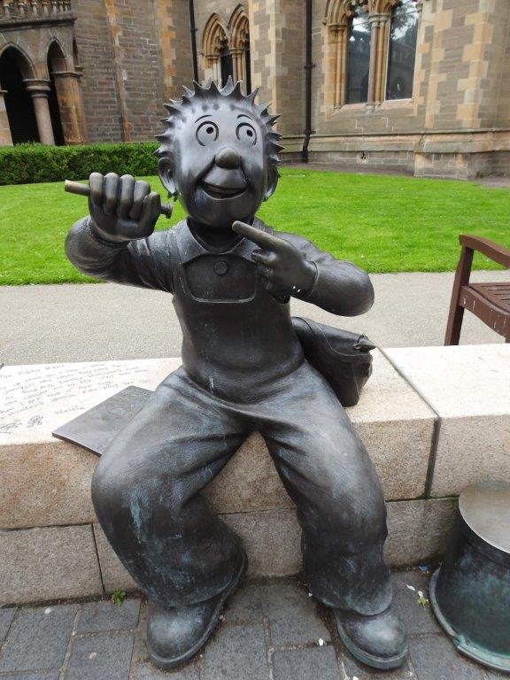 Having seen two little fellows that most people know, we headed off to see another potentially lesser known fellow who was a close friend of ours throughout our childhood, Oor Wullie. I really, really, really wanted to see him, in fact he almost made the 70B4Seventy list, so I am thrilled we decided to head into Dundee and find him. He was as fun loving and cute as I hoped he would be, and you know what, he seemed pleased to see us. He resides outside the DC Thompson building, which of course is very appropriate, as they are the newspaper publisher who have printed the comic forever. We in Australia came to know him because our uncle worked for DC Thompson and would send a Sunday Post to our dad each week. It came rolled up, wrapped in brown paper, and was a highlight of dad’s week. Once he read it, we could read the Oor Wullie and The Broons comic, before the paper left our house and did the rounds of the Scottish expat community. When it finally got returned to dad, it was piled up with the others. Once I started working in an aged care facility, the papers were taken to work for one of our Scottish patients, who lovingly piled them up, as though they were his most prized possession. In hindsight, I suspect they actual were his most prized possession. I bet he loved reading the comics as much as the rest of the paper. Needless to say, visiting Oor Wullie was a trip highlight! If you head there, I can confirm that some of his other pals are also living in Dundee.