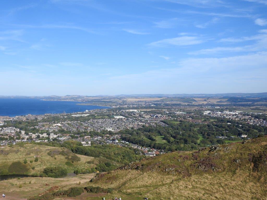 The issue with climbing the crags first is that we basically had to go almost all the way back to ground level to then start climbing Arthur’s Seat! As usual, going down was tough, on a gravel path. At the bottom we chose a path and started the climb up again. There are so many ways to go up, and somehow we chose the hardest option, with me crawling on hands and knees at one stage. Eventually we made it to the top and admired the 360° view over the pretty city, along the Firth of Forth and out to sea!