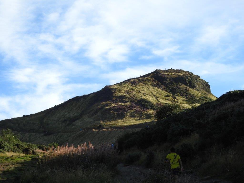 Of course our custom now is to ascend to a high point in the city before we leave, and with just a couple of days to go in Edinburgh, we decided to tick this off today, a glorious sunny day. Although we normally don’t ascend a hill to do this, given our lack of steps over the last few days, and the glaring Arthur’s Seat that dominates the city, we decided to hike up to the top. It was a decision many other folk in Edinburgh had also made, so we had to share the path with quite a few other people. Jim Bean decided we should first walk the crags, so we started on a more gentle slope, with grassy options, and a great view of the city! Apparently someone falls off the crags at least once a year. I can see why!