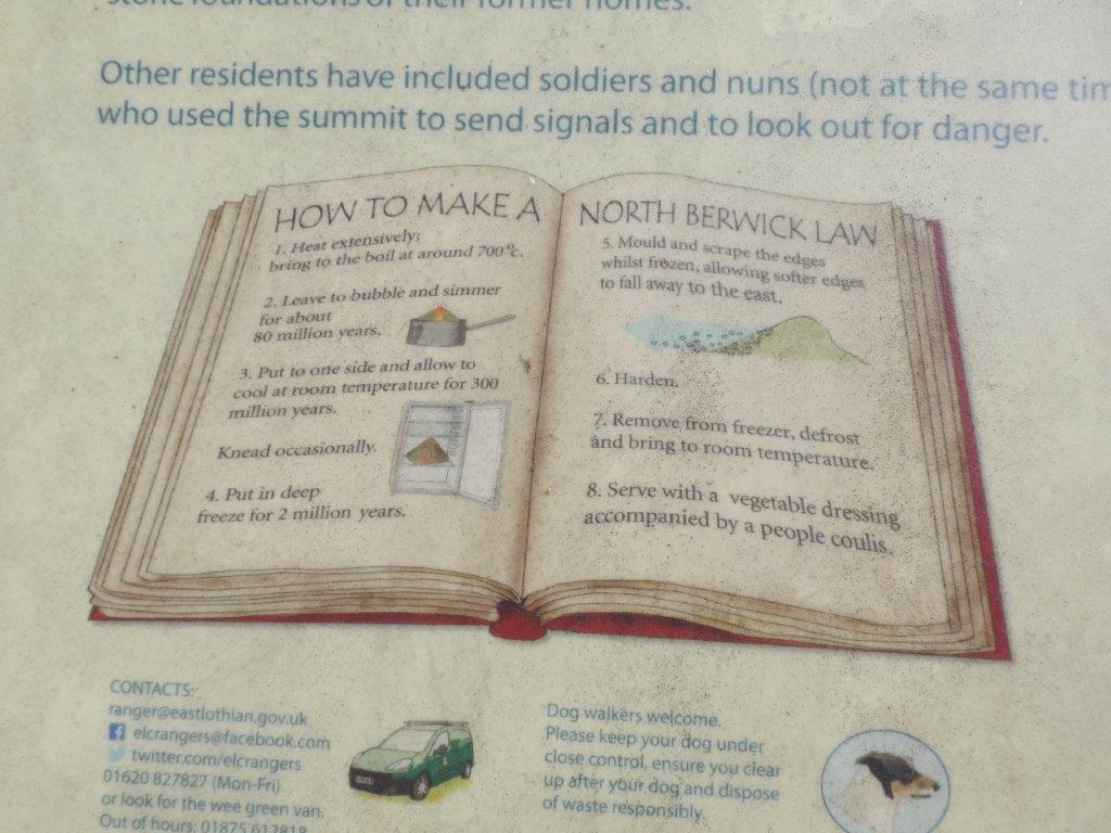Within a short time we were at North Berwick (nowhere near Berwick) and enjoying some brunch in a sweet cafe along a very pretty high street. We were able to do a little bit of our shopping along here, buying a book or two for Evie. As usual, we aren’t shopping for too much, as it’s all too hard to pack and carry. We also took a bit of a look at the coast, but the cool nip in the breeze drove us away from the foreshore, towards the Law that we saw yesterday from Arthur’s Seat. The Law is (what). Naturally, we had to climb it.