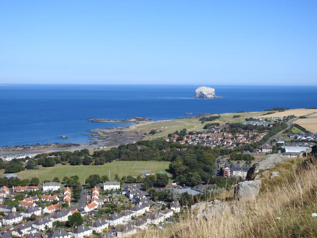 At the top of the Law there is a ruined building and a (replica) whale jaw. I am not sure why the whale jaw bone is there, but the first (real) jaw was installed their way back in (when). I also have no idea how, way back in the day, they got it up there. As well as those 2 things to look at, there is of course the view, which is outstanding, and far better than the view from Arthur’s Seat. We could see back along the coast to Edinburgh, making out the castle at the end of the Royal Mile, and yesterdays peaks.