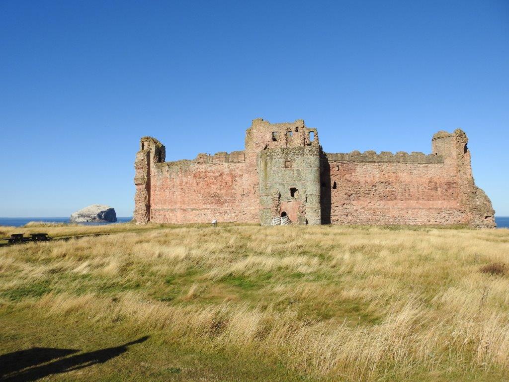 Eventually we did descend and make our way along the road to Tantallon Castle, simply because we had used up most of our day enjoying North Berwick, and had no time to meander further along to Berwick (next time). Although not overly old, or overly important in the scheme of things, Tantallon is a great place to visit for so many reasons. Firstly it is a beautiful ruin, sitting on a stunning cliff along a picturesque coastline, with the best view of Bass Rock that it is possible to have.