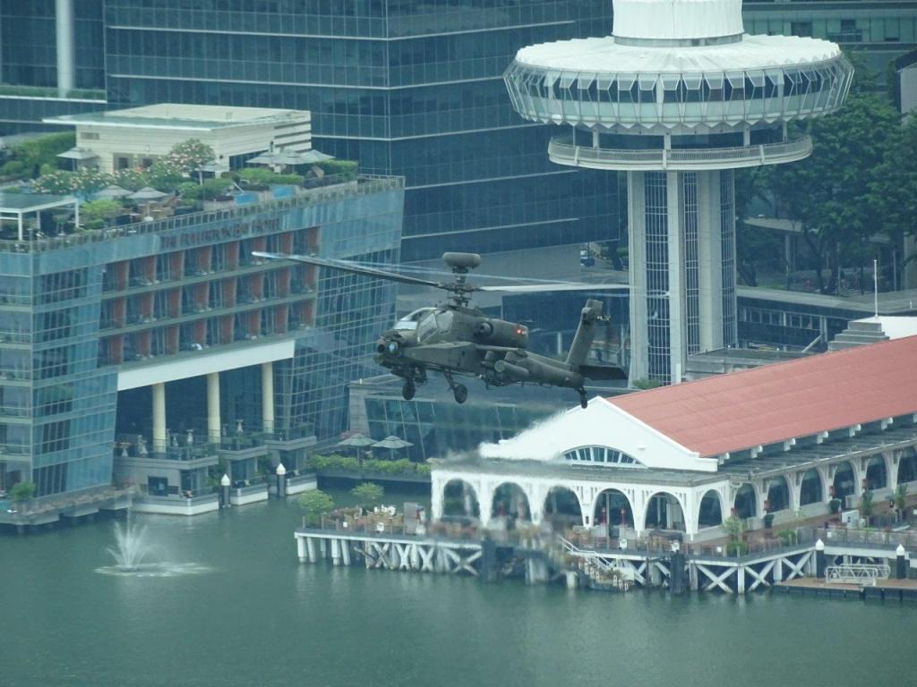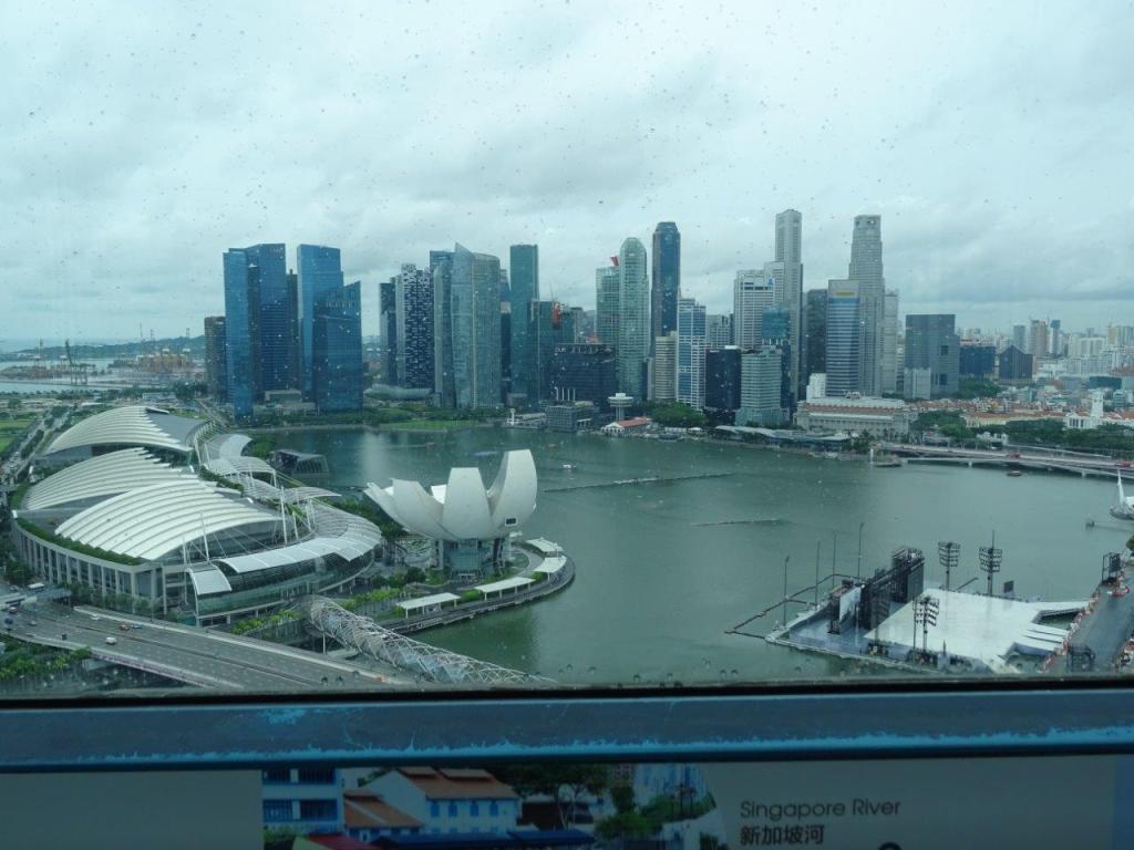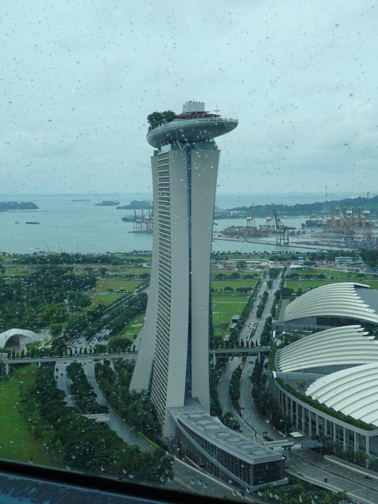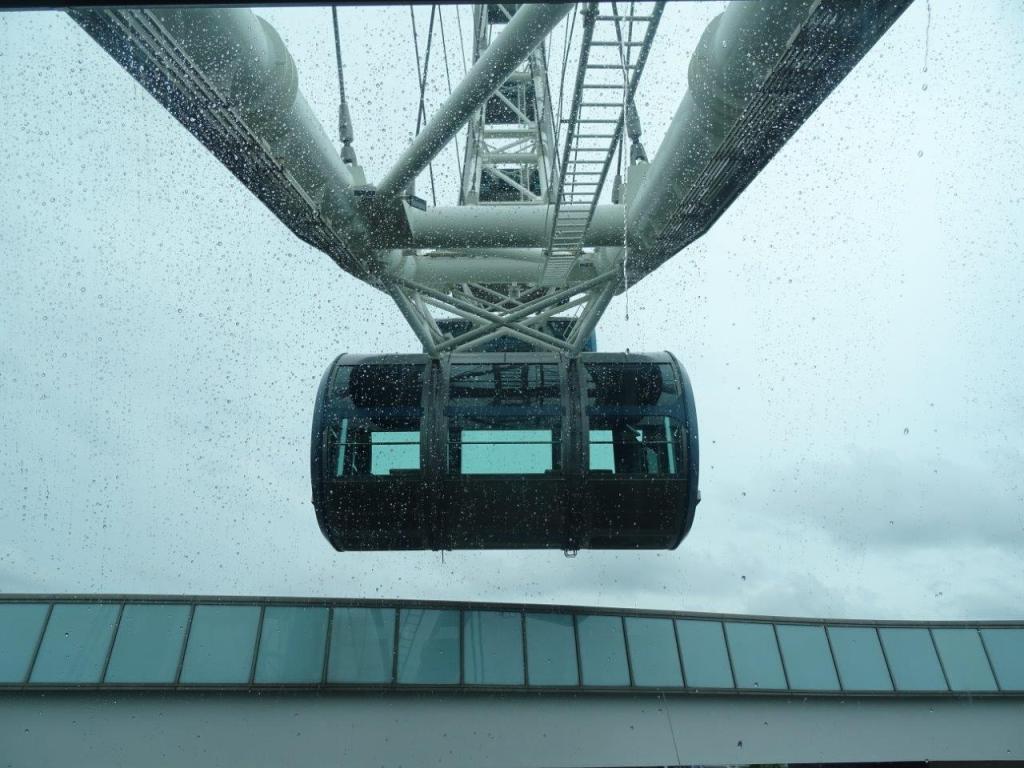 I have been on the London Eye so I wanted to have a go at this ferris wheel as well. That’s no mean feat for me because I am scared of heights. I get the sensation that I may just decide to fall off. Or jump off. Irrationally. But I took a big gulp and paid the dollars and on we went. The site is geared to cope with crowds but unfortunately for the operators on that day it was quiet. We had a capsule to ourselves and the capsules before and after us were empty. Perhaps that’s because it was an overcast and showery day, but then that’s the case on many days in SG. We got lucky while we were in the air, with helicopters buzzing all around us as they practiced for the impending event in the bay. At one stage we were higher than the helicopters as they hovered in the air, before looping around and having another practice. The capsule also gets to the same level as the Marina Bay Sands building so you get a great view of the ship-like structure that straddles the buildings. In fact you get great views all round and if you look hard enough, you can spot the Merlion all the way down there.