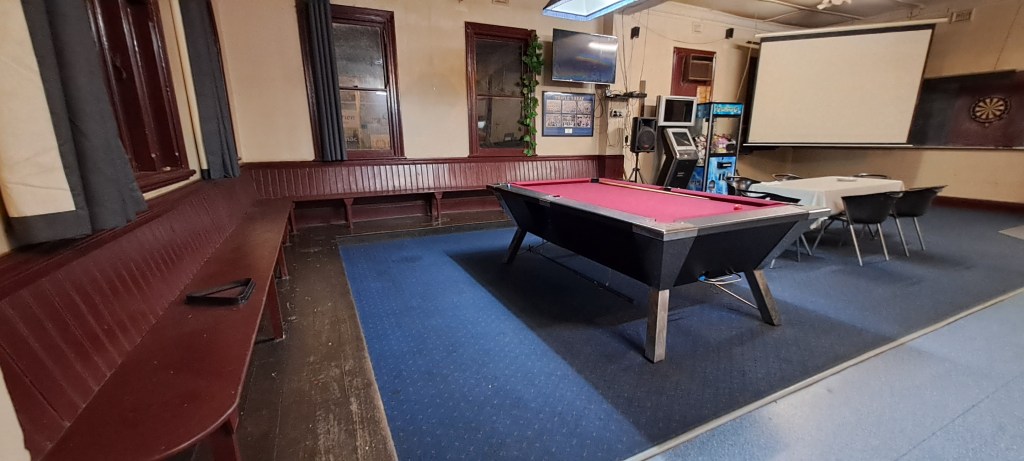 We planned to have dinner at the pub in town and then stay at the free camping area across the road. Little did we know that the pub, whilst there, had absolutely no patrons at 7pm on the last working day of the week (before a 4 day weekend)! Nonetheless the staff checked with the chef and we were able to get a meal ordered. While we waited we decided to have a game of pool, but the table had a different idea, coughing up a single ball for us to play with. Old mate behind the bar then had to call someone to find the key to open the table and get it to spew out the others balls, right as our dinner came out!