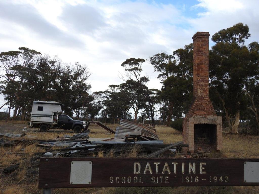 Back in the car we headed on down the road to Dumbleyung where we took the opportunity to grab a coffee. Having spent time in town before, we decided to push on to the school ruins at Datatine to enjoy a hot cross bun (it is Good Friday, so we can legitimately eat them now). The ruins are exactly that, made worse by inconsiderate individuals dumping their rubbish at the site. Nonetheless I could imagine kids running around the site, past the gorgeous gum trees. I am not sure where the kids came from, but perhaps there were many more homes in the area than there are now, that seems to be deserted.