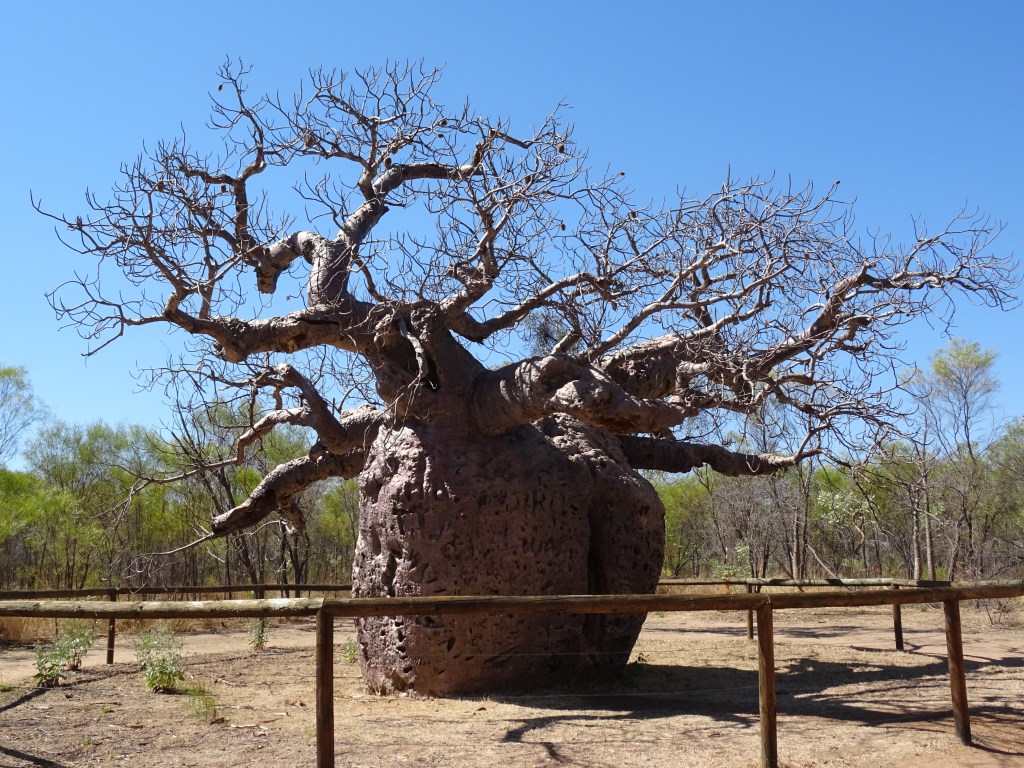 Before leaving Derby we headed to the prison boab tree and the long water trough. The prison tree, whilst having a horrible history had a much less dreadful feel about it than the old gaol. It also explained about the importance of the boab to aboriginal people for food, and other traditional reasons. It explained that if you interfere with a boab you’ll get it back in spades. Maybe those gaolers got what was coming to them, as I hope the people who insist on initialising the trees do! Back in the car we hit the road. It very quickly degenerated to a single lane with passing involving one wheel on the road and the other on the side of the road. Not that there were many passings, maybe a dozen.