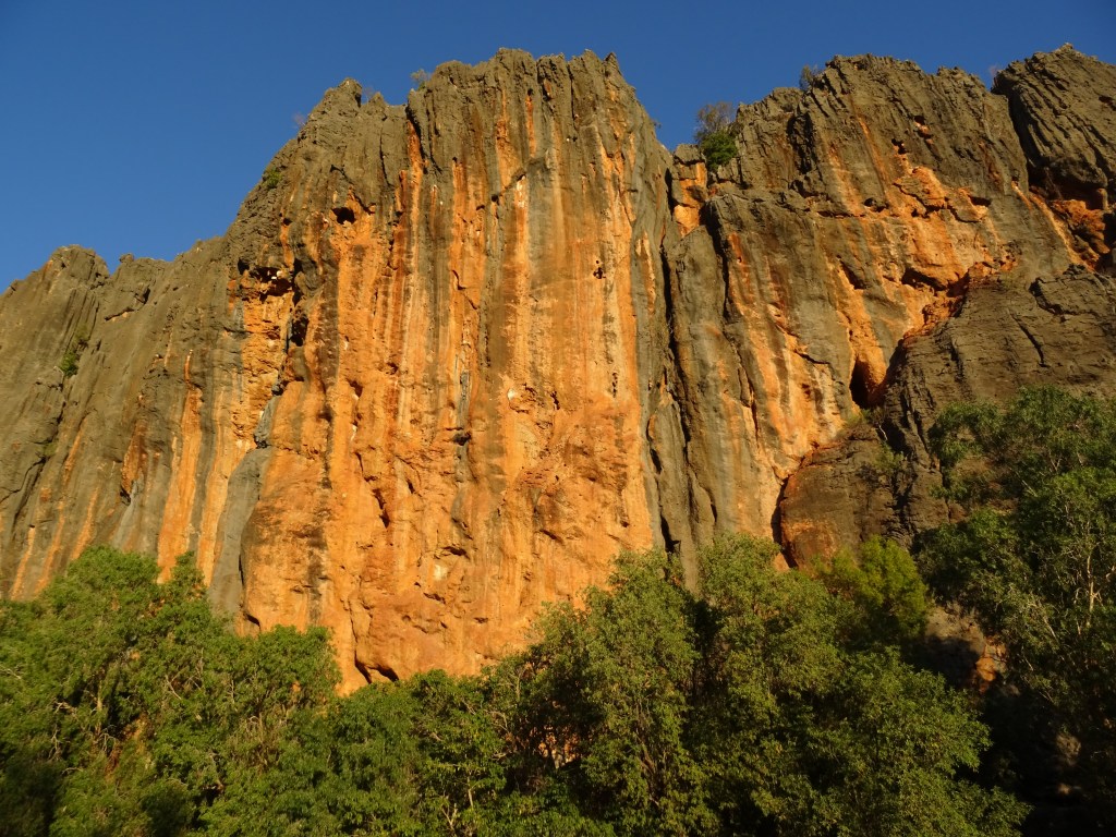 A couple of words of note. The last allowed time to walk into Emma Gorge is 3pm, to allow sufficient time to walk out before dark. Remember that this whole area operates on WA time despite being so far east that it would be more appropriate if NT time was used. It gets light here early and gets dark here early too. The other word of note is about the numbers of people here. Apparently it is slowing down, but everywhere we have been, there have been bus loads (literally) of people. Don’t expect to get a place to yourself. We had Emma Gorge for about 2 minutes before a contingent of people rolled in. As we left, one young couple remained, clearly waiting to have it to themselves. Finally, the gorge is about an hour from Kununurra so bear that in mind if you are trying to make Zebedee before it closes, or be back in town before dark.